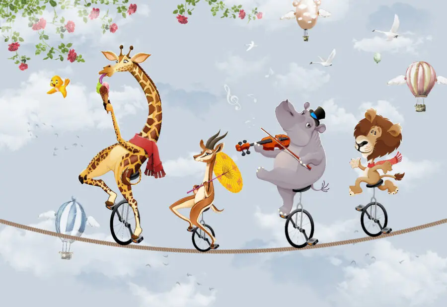 Trasformate lo spazio di ogni bambino con questo delizioso murale con un ippopotamo che fa la serenata a tutti con il violino! Immaginate la gioia di vedere una giraffa e un leone, entrambi su monocicli, che si uniscono al divertimento. Una scena stravagante che stimola l’immaginazione e le risate. Ideale per le camerette o le aree gioco, questo murale può facilmente ravvivare qualsiasi parete spenta, dando un tocco di carattere. Immaginate i bambini che ridono mentre si lanciano ogni giorno in un’avventura: chi non vorrebbe svegliarsi con questo caos gioioso? È un tocco perfetto per ispirare creatività e gioia!