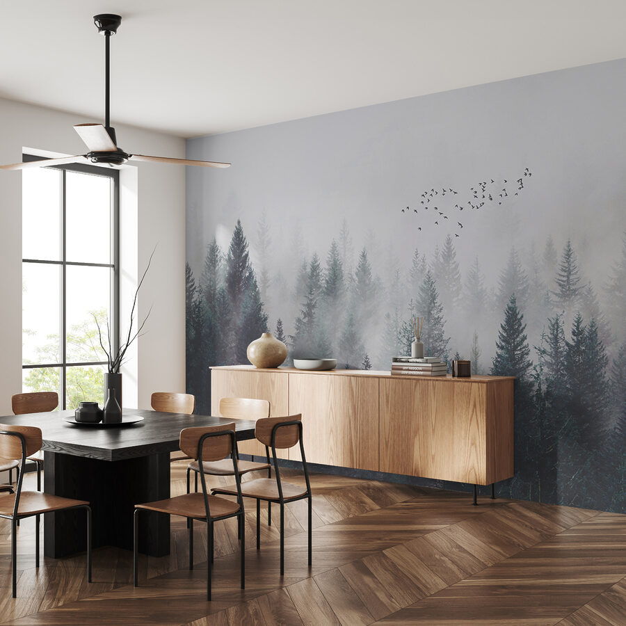 Trasformate il vostro spazio con questo splendido murale con uno stormo di uccelli che si libra in un cielo da sogno. Immaginate di entrare in una foresta serena dove il fruscio degli alberi sussurra storie di avventura. La leggera nebbia aggiunge un pizzico di mistero, facendovi sentire come se vi foste persi nella natura, anche nel vostro salotto. Invita a sognare ad occhi aperti e a riflettere. Gli amici potrebbero chiedervi se avete portato l’aria aperta in casa. Perfetto per gli angoli più raccolti o per una vivace parete di rappresentanza, questo murale coniuga senza sforzo l’arte con la tranquillità, creando un rifugio per rilassarsi e lasciarsi ispirare.