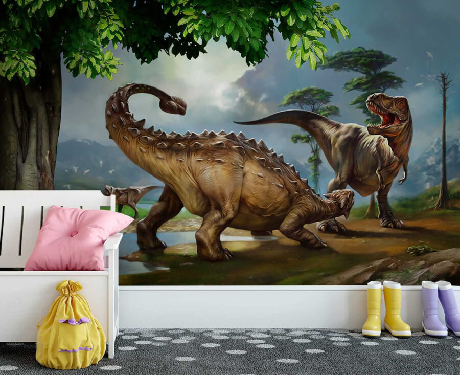 Immaginate di entrare in una scena di un film di successo sui dinosauri: questo murale è esattamente così! Con un dinosauro di grandi dimensioni con lunghe corna e una coda che sembra attraversare l’intera parete. I bambini ne vanno matti perché, diciamolo, i dinosauri sono semplicemente fantastici. E non è solo per i bambini. Chiunque ami un tocco di avventura preistorica nel proprio arredamento troverà questo murale un successo strepitoso. È come avere un’oasi giurassica a casa propria, a parte il rumore dei passi…! Perfetto per camere da letto, stanze da gioco e persino spazi abitativi stravaganti. Con colori vivaci e dettagli incredibili, è quasi come fare un salto nel Cretaceo. Qualcuno vuole viaggiare nel tempo? Trasformate il vostro spazio in un argomento di conversazione e lasciate che questi antichi paesaggi e creature accendano l’immaginazione e la meraviglia ogni giorno.