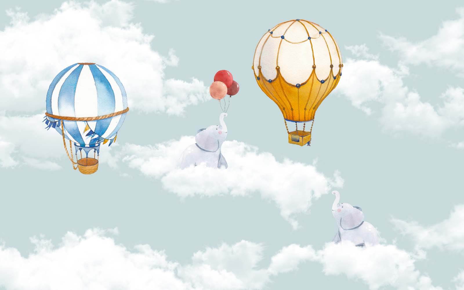 Immaginate di trasformare la cameretta di un bambino in un’avventura da sogno: questo murale “Mongolfiera nel cielo” fa al caso vostro! Immaginate delle stravaganti mongolfiere che fluttuano tra soffici nuvole, con dei giocosi elefanti che si accompagnano a dolci palloncini. È come entrare in un libro di fiabe pastello… Il cielo azzurro e le soffici nuvole bianche creano un’atmosfera rilassante, perfetta per stimolare l’immaginazione dei bambini o per cullarli in dolci sogni.