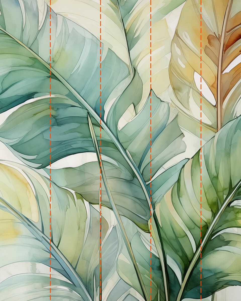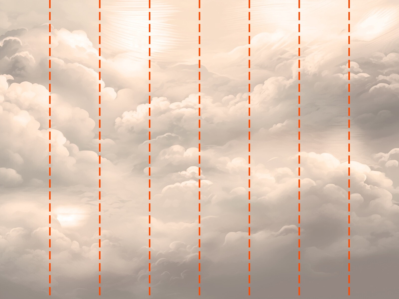La carta da parati verrà preparata in base alle dimensioni fornite durante il processo d’ordine. La tela sarà suddivisa in comode sezioni, ciascuna larga fino a 50 cm.
