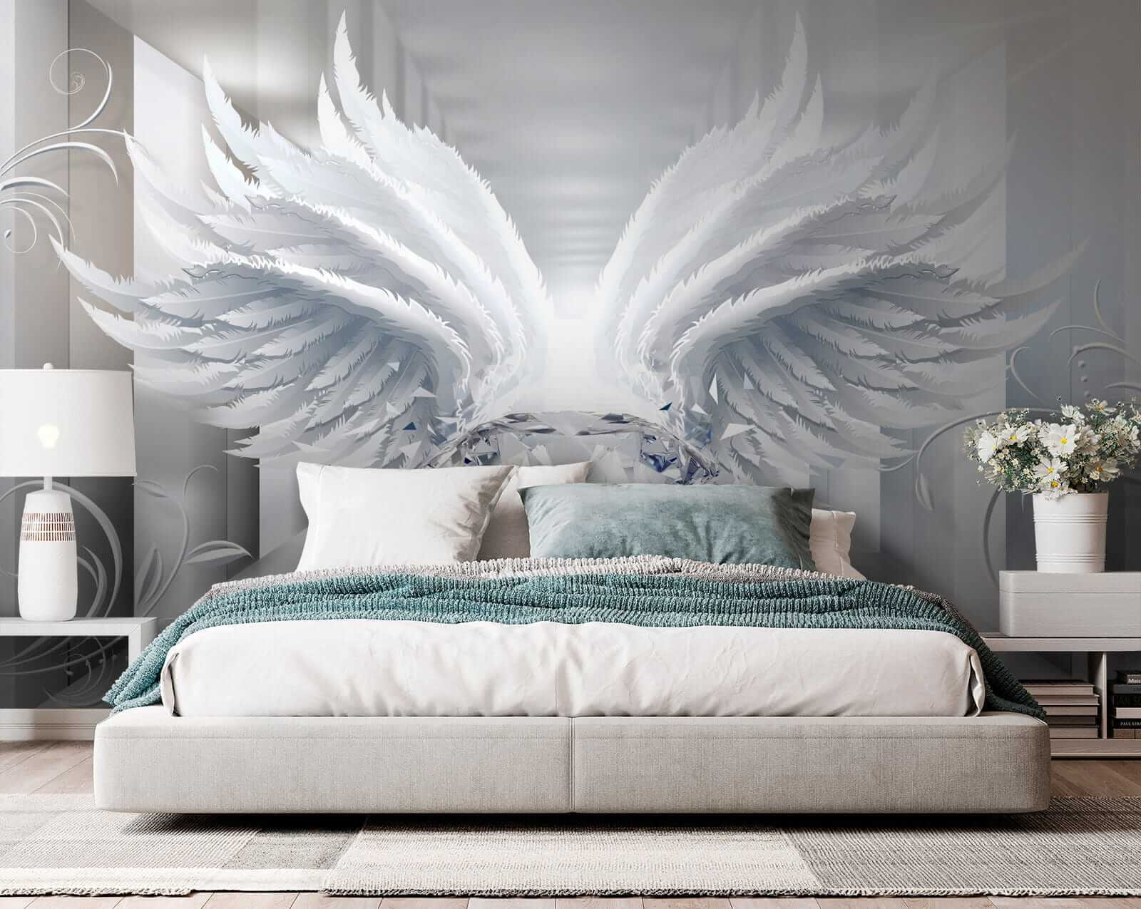 Carta da parati Diamante con ali su una superficie bianca (SKU: u30249)