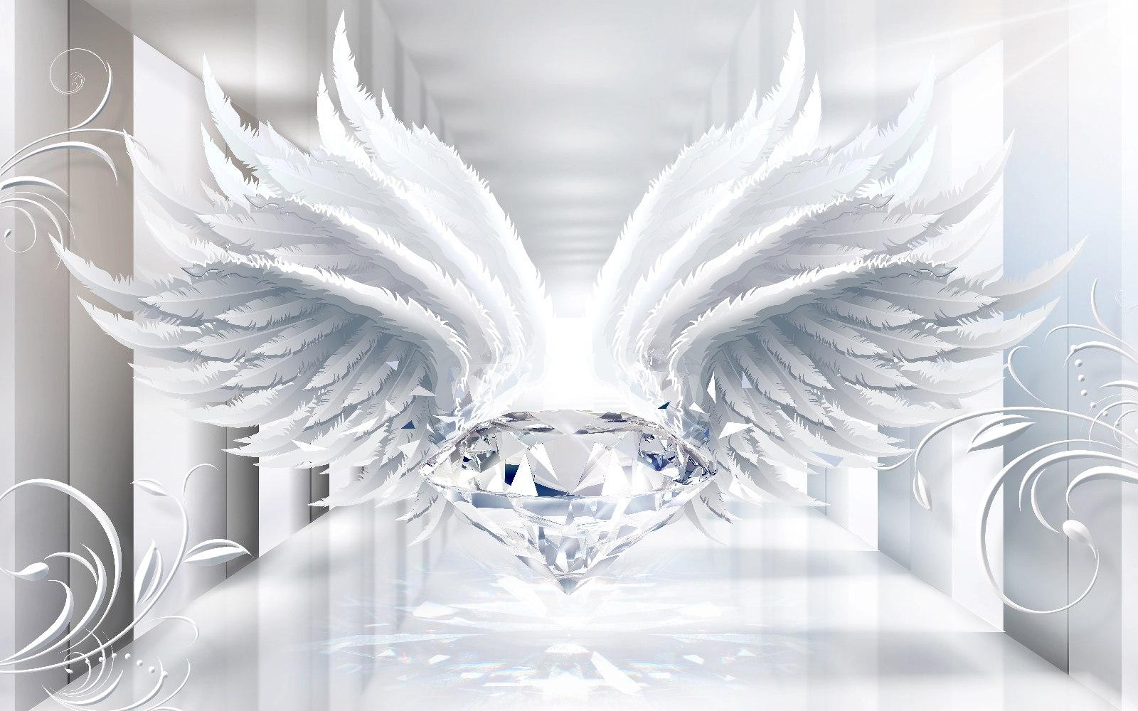 Carta da parati Diamante con ali su una superficie bianca Carta da parati Diamante con ali su una superficie bianca