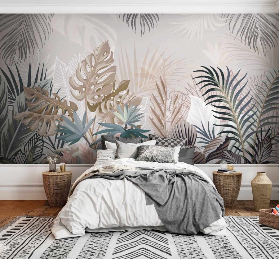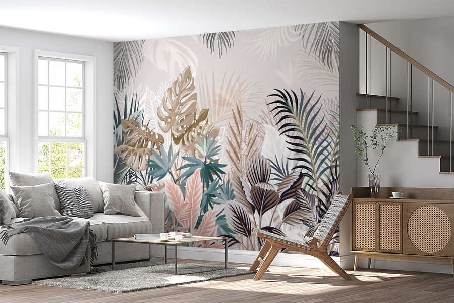 1 recensione per Carta da parati Foglie tropicali in tonalità tenui