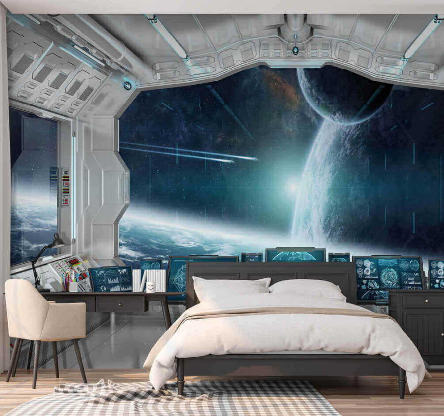 Immaginate di entrare nella vostra stanza e di sentirvi al comando di un’astronave: sembra bello, vero? Questo murale fa proprio questo. È come un portale verso un altro universo, con comandi futuristici e una vista mozzafiato sullo spazio! Perfetto per sognare in grande e vivere avventure immaginarie: i bambini e gli adulti più giovani lo adoreranno. Non è solo un murale, è un’esperienza. L’installazione nel vostro spazio lo trasforma immediatamente in un paese delle meraviglie fantascientifico. Riuscite a immaginare di prendere il caffè del mattino con la vista di galassie lontane? Un inizio di giornata stellare! 🚀✨