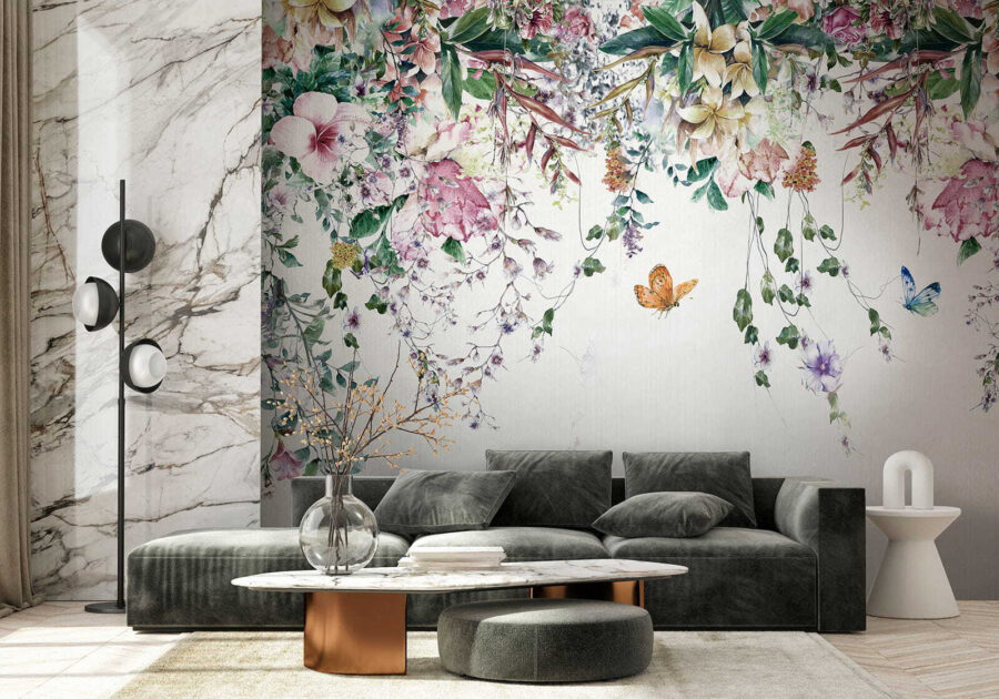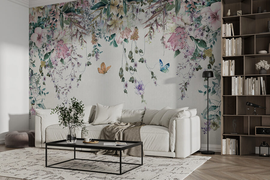 Questo murale non è solo una decorazione, è un’atmosfera. Immaginatevi mentre vi rilassate dopo una lunga giornata, circondati da fiori e farfalle fluttuanti… tranquillo, vero? È come avere una fetta di paradiso personale. Quindi perché aspettare? Lasciate che le vostre pareti raccontino una storia di eleganza e fascino vivace!