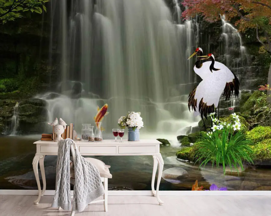 Transform any room into a serene oasis with this stunning waterfall mural. Bursting with life, it features playful koi fish, elegant birds in mid-flight, and vibrant flora that brings nature straight to your walls. Picture this: a cozy reading nook where the calming sound of cascading water fills your mind, while the rich greens and soft blues whisk you away to a tranquil retreat. It’s like having a mini-vacation at home—no plane ticket needed. Perfect for those who appreciate beauty and serenity, this mural adds a touch of whimsy and wonder that’ll make you smile every time you walk by. Trust it to brighten up any dreary day!