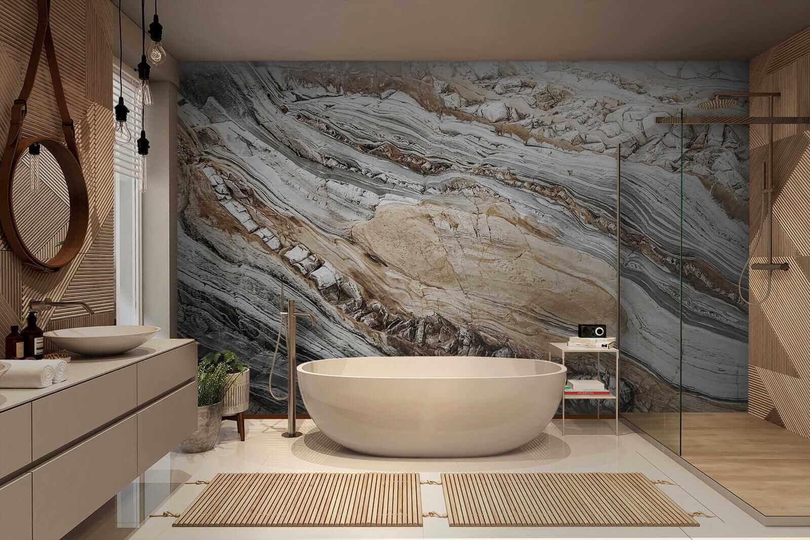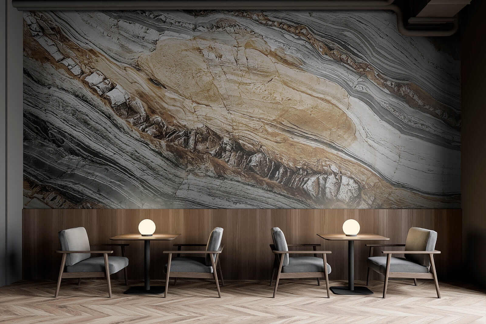 Immaginate di entrare nel vostro salotto e BAM: ecco un’ipnotizzante esposizione di strati di roccia naturale in rilassanti tonalità della terra. Questo murale è come l’arte della natura, che porta nel vostro spazio un’atmosfera di terra e di radicamento. L’effetto 3D è incredibile: sembra quasi di poter toccare quelle texture marmorizzate.