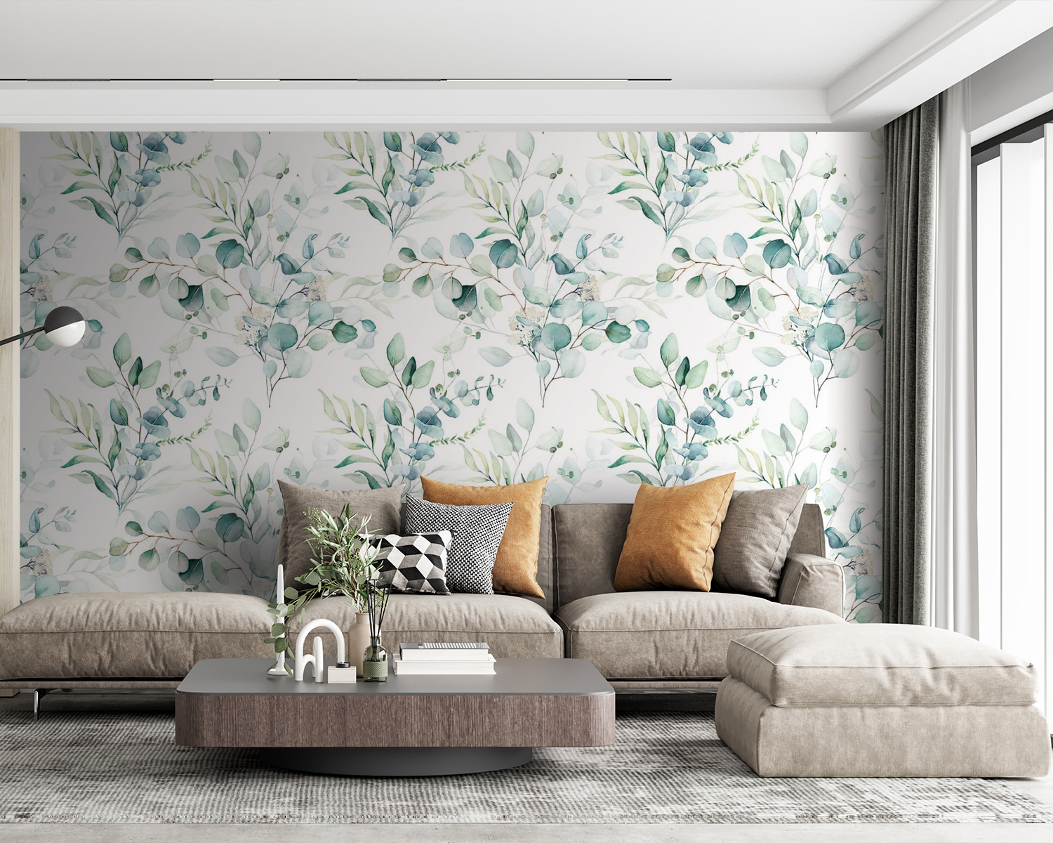 Transforming a space with this wall mural of leaves and branches feels like bringing a slice of nature right indoors. Imagine standing in your living room, surrounded by a calming blend of greens and subtle blues. It’s like a fresh breeze wafting through, minus the bugs! Perfect for reading nooks or cozy dining areas, this design gently whispers tranquility.
