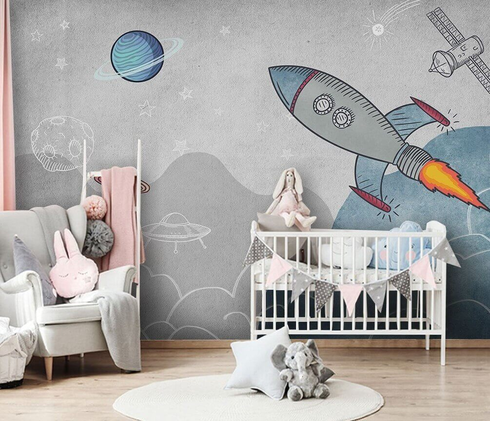 Avete mai sognato di trasformare la stanza di un bambino in una stravagante avventura nello spazio? Immaginate questo: un murale di razzi che si lancia tra pianeti giocosi e scarabocchi di galassie lontane. Sembra una pagina di un libro di fiabe!