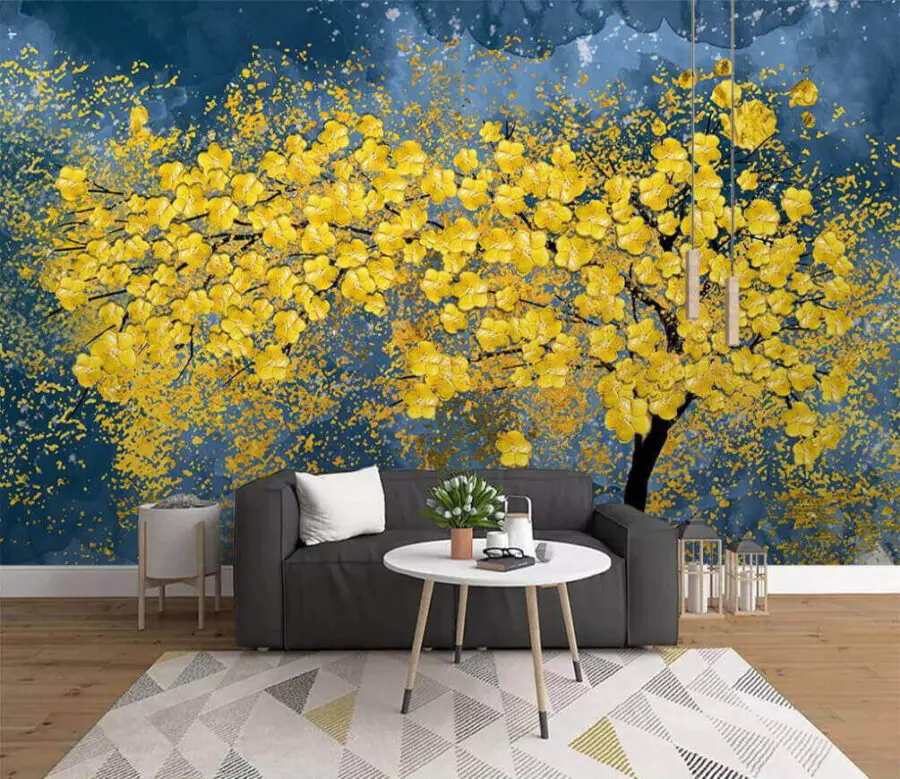 Entrate in un mondo in cui i gialli vivaci incontrano uno sfondo rilassante. Questo murale, con un affascinante albero dalle foglie dorate, aggiunge un tocco di allegria a qualsiasi spazio. È come avere l’autunno tutto l’anno, senza il fastidioso rastrellamento delle foglie! Immaginate questa parete che illumina un accogliente salotto o che ispira la creatività in un ufficio.