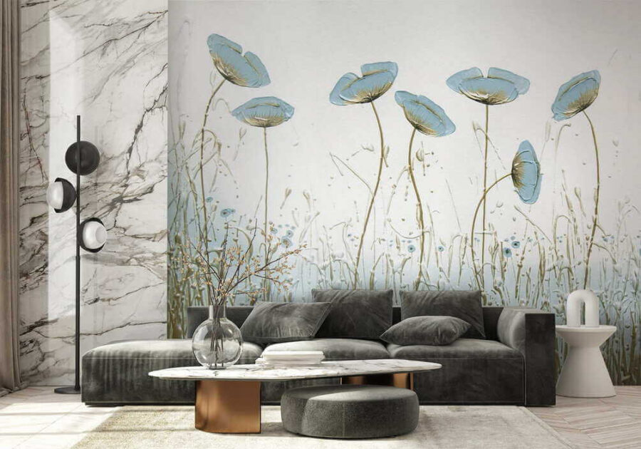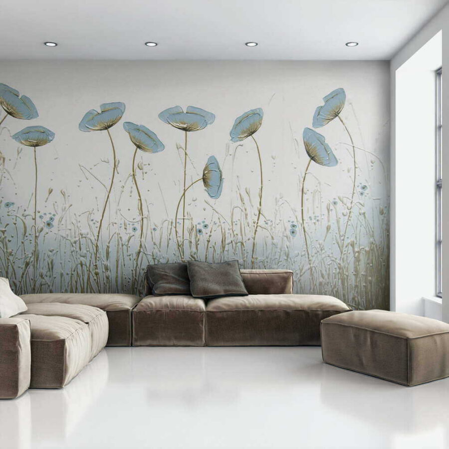 Avete mai desiderato portare un tocco di natura in casa? Questo splendido murale potrebbe essere la vostra risposta. Immaginate: delicati fiori blu che ondeggiano dolcemente, come se sentissero una leggera brezza che li sfiora. Immediatamente rasserenante, vero?