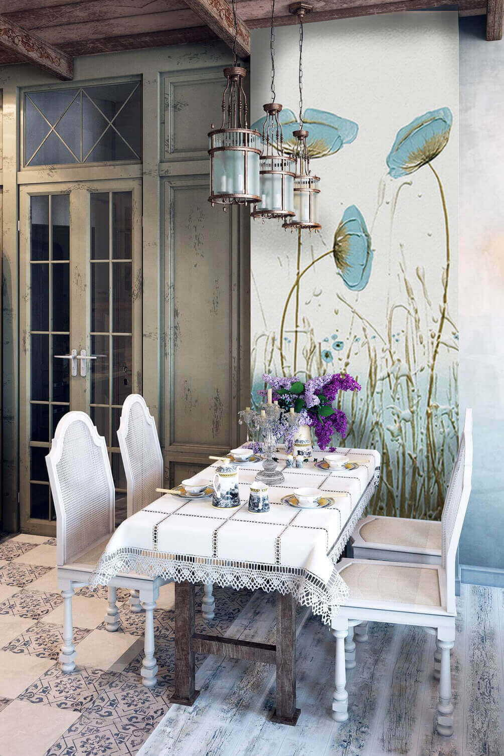 Avete mai desiderato portare un tocco di natura in casa? Questo splendido murale potrebbe essere la vostra risposta. Immaginate: delicati fiori blu che ondeggiano dolcemente, come se sentissero una leggera brezza che li sfiora. Immediatamente rasserenante, vero?