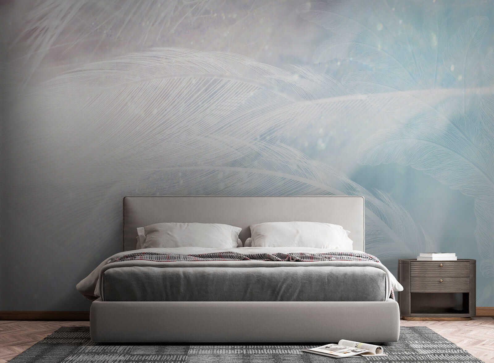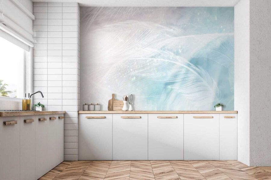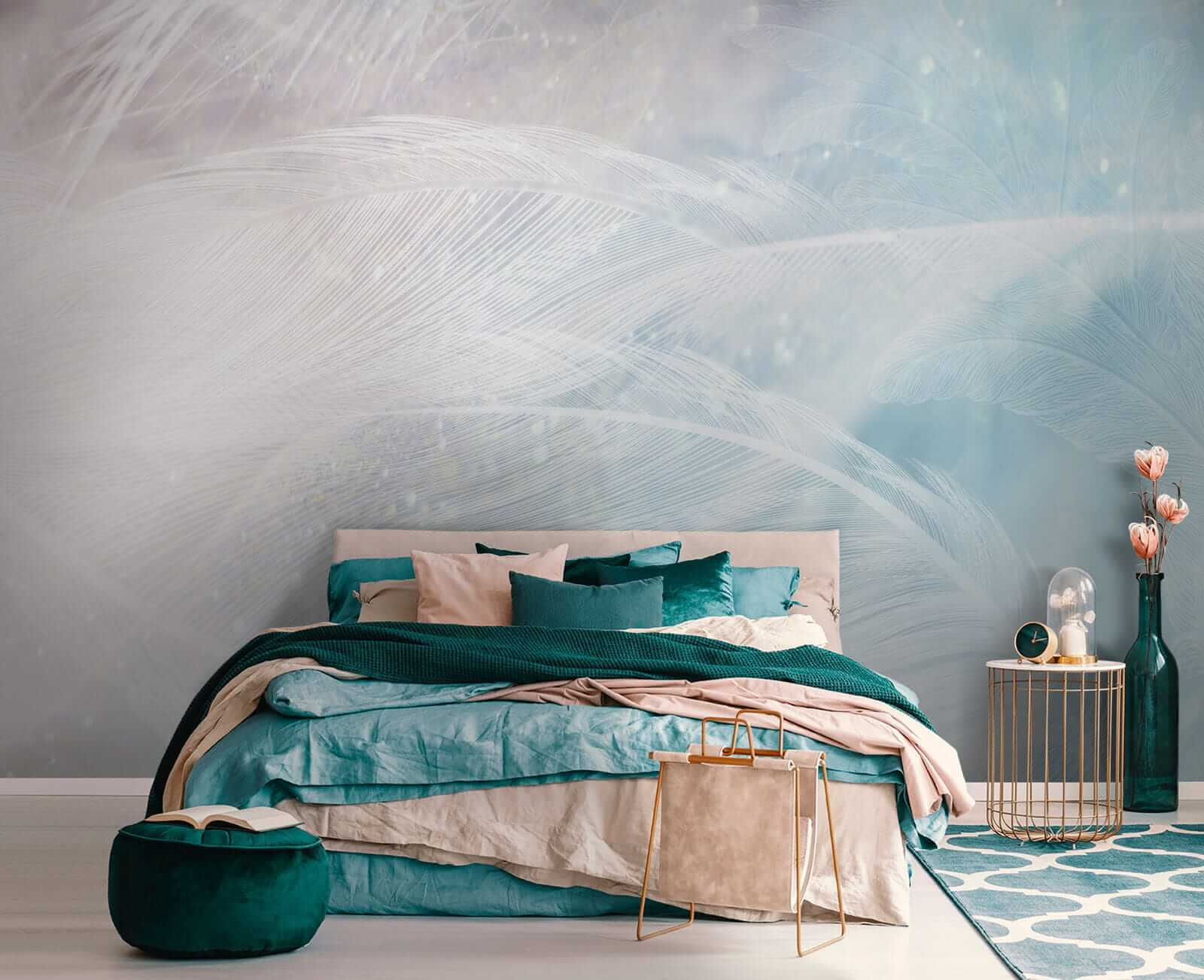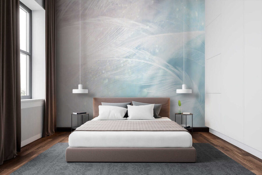 Che si tratti di una camera da letto da sogno o di un angolo tranquillo in ufficio, questo murale si adatta perfettamente, aggiungendo un pizzico di bellezza acquerellata e tanta tranquillità. Sembra quasi di essere avvolti da un abbraccio della natura ogni volta che si entra nella stanza. I blu chiari e i dettagli in piuma rendono tutto più morbido e rilassato. Credetemi, le vostre pareti vi ringrazieranno!
