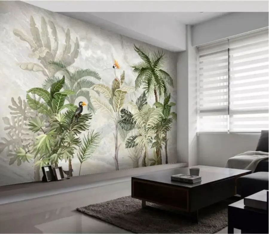 Questo murale non è solo uno sfondo, ma un’intera atmosfera. È quasi possibile sentire il fruscio delle foglie e il cinguettio silenzioso che sembra richiamare l’attenzione su una giungla serena e nascosta. Che sia il centro del soggiorno o un tocco unico in una camera da letto, questo murale riempie senza sforzo lo spazio con un’energia invitante e rilassata. E siamo onesti, chi non vorrebbe sentirsi come se avesse un pezzo di foresta pluviale a casa propria? C’è qualcosa di innegabilmente rilassante: fidatevi di me, crescerà con voi, foglia dopo foglia.