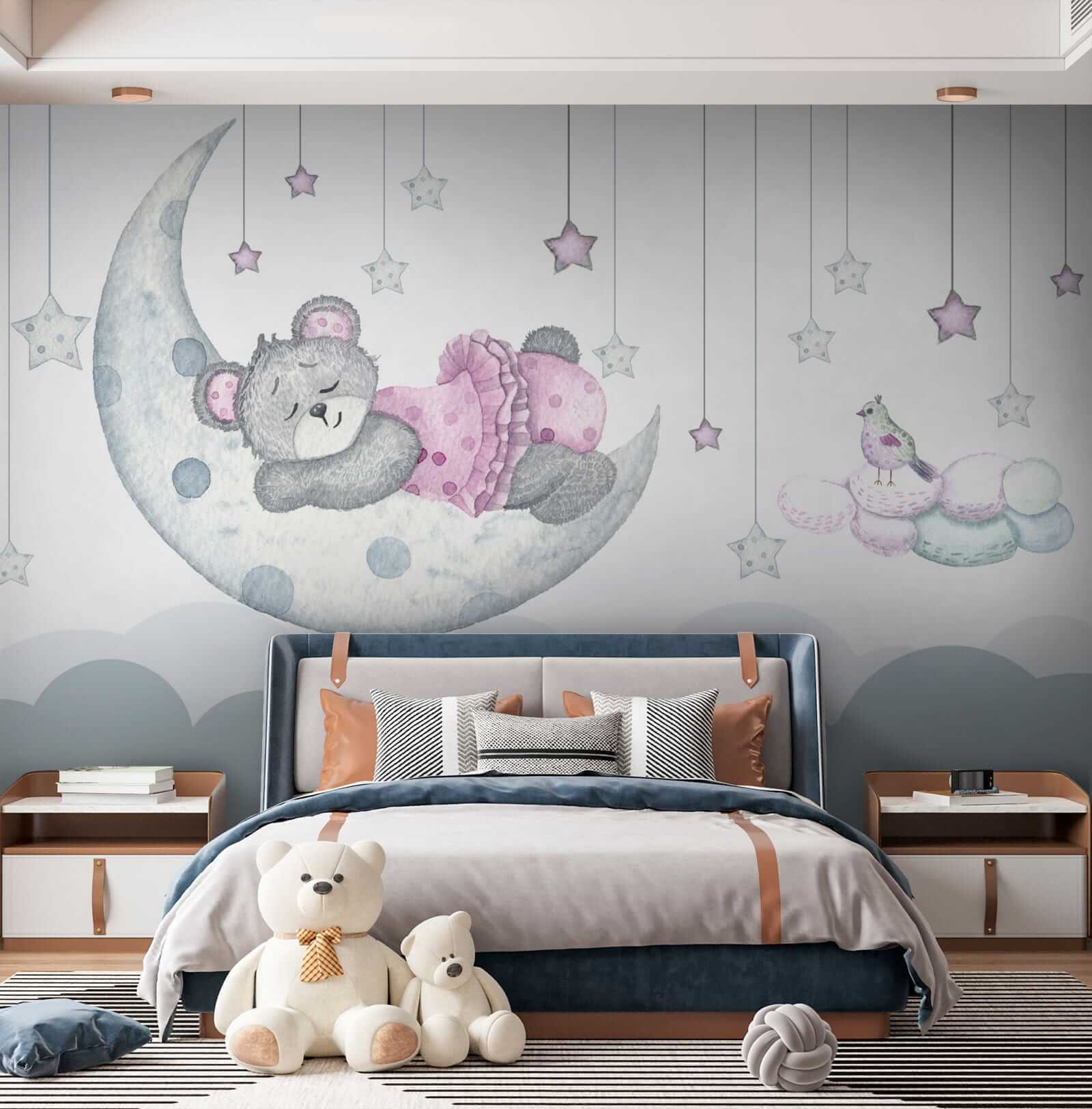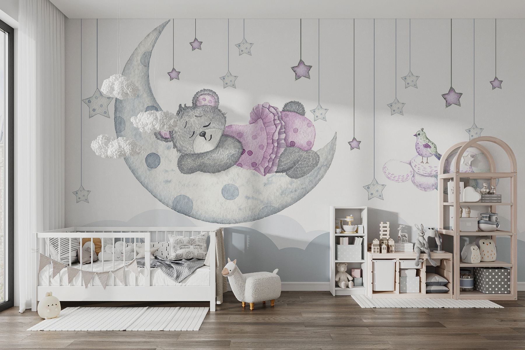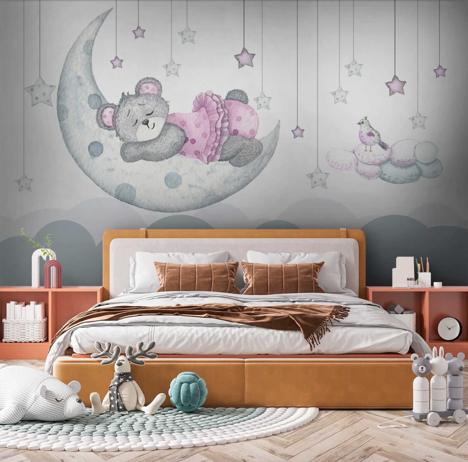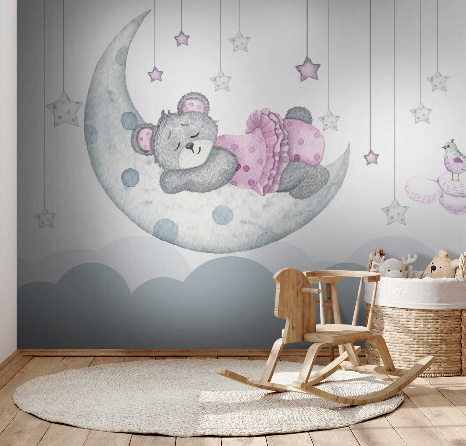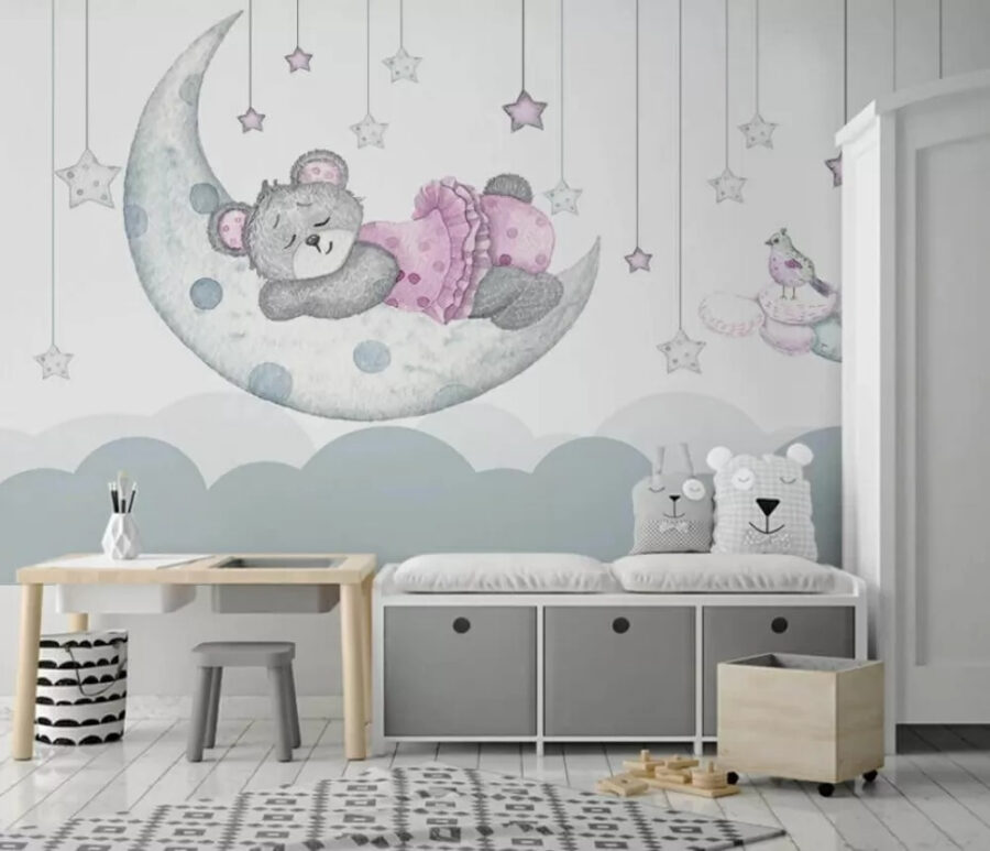 Immaginate un orsacchiotto con un vestito rosa che sonnecchia pacificamente sulla luna: sembra un sogno, vero? Questo murale ad acquerello è perfetto per aggiungere un pizzico di magia alla stanza di ogni bambino. È morbido e stravagante, con delicati colori pastello che creano un’atmosfera rilassante… perfetta per le storie della buonanotte e i sogni d’oro! Immaginate la faccia del vostro piccolo quando vedrà il suo nuovo migliore amico appeso alla parete. Inoltre, è un ottimo sfondo per foto divertenti. Vibrazioni accoglienti e scintille creative: questo murale le trasmette entrambe!