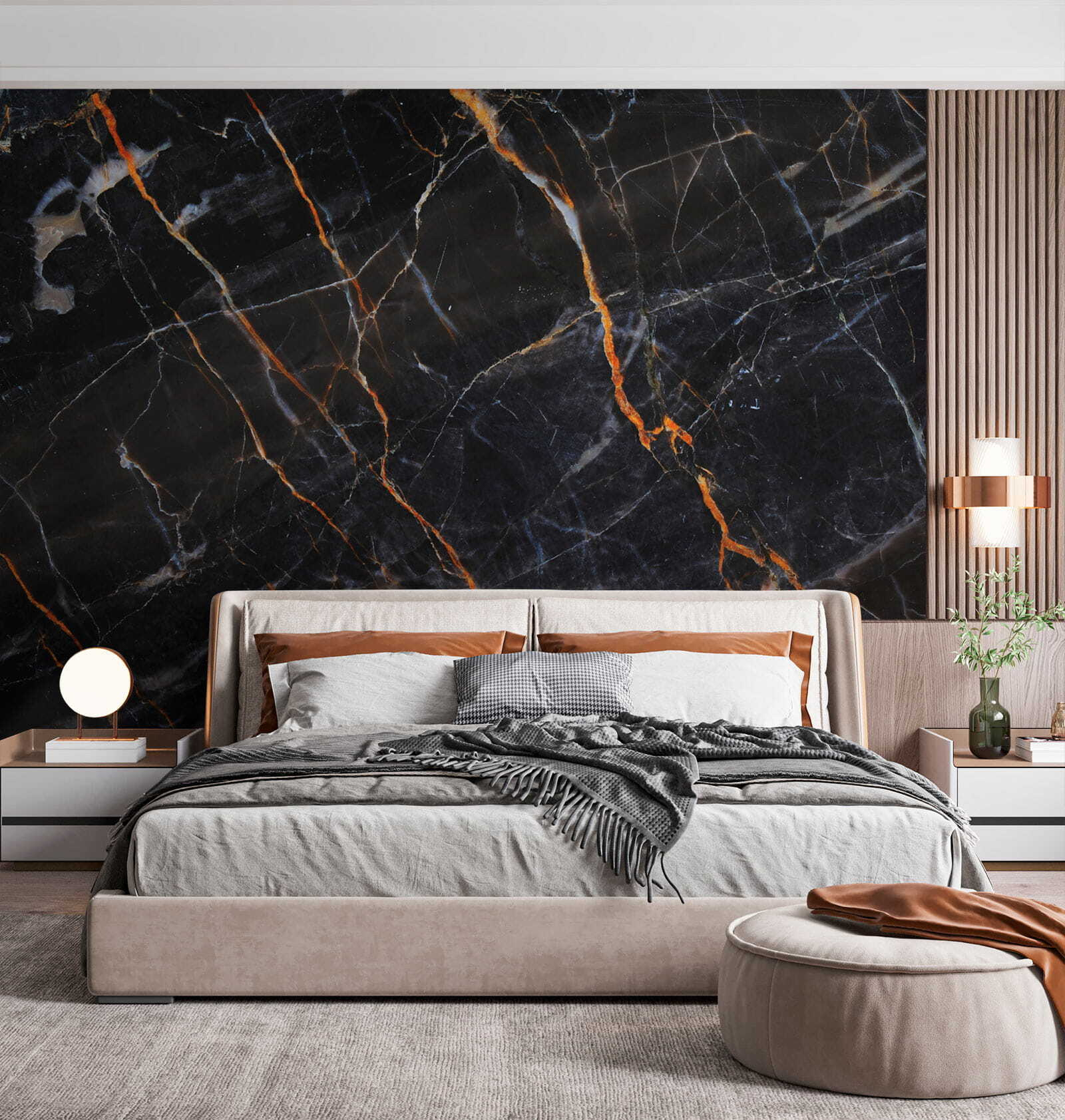 Carta da parati Marmo nero con striature arancioni Carta da parati Marmo nero con striature arancioni