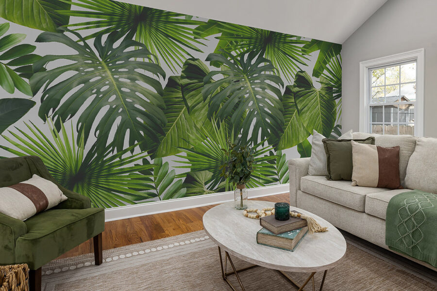 2 recensioni per Carta da parati Motivo di foglie tropicali verdi e lussureggianti
