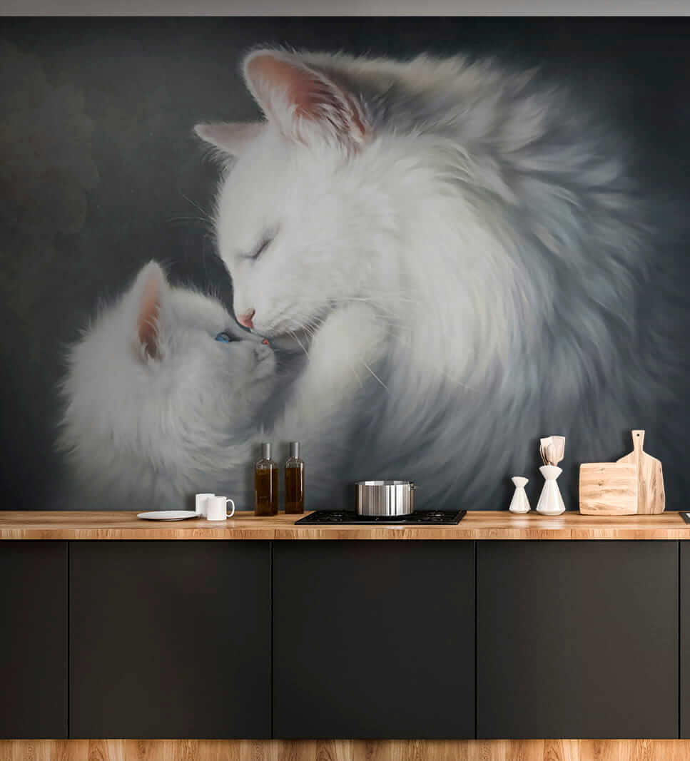 Guardate questi due teneri cuccioli! Questo murale “Feline Affection at its Finest” farà sciogliere i cuori. Perfetto per qualsiasi stanza che necessiti di una spruzzata di calore ed estrosità, sia che si tratti della camera di un bambino, di un accogliente angolo lettura o persino del soggiorno. Immaginate di svegliarvi ogni giorno con questo adorabile duo di mamma e gattino… un’immediata carica di umore! E poi, chi può resistere a quelle morbide pellicce e a quelle tenere coccole, giusto?