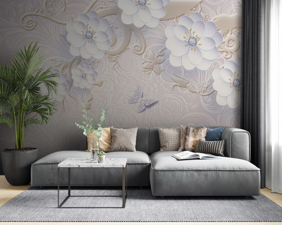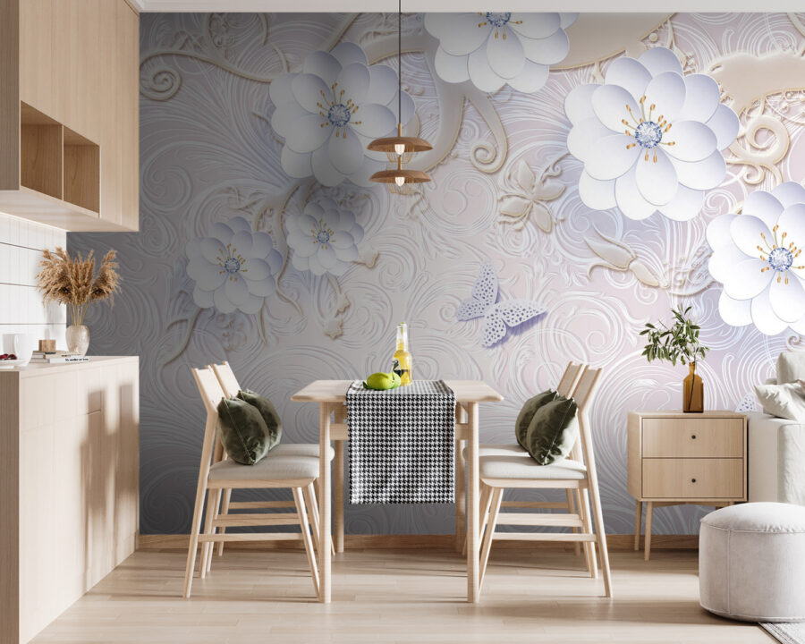 Trasforma il tuo spazio in un rifugio sereno con questo splendido murale che raffigura delicati fiori bianchi e farfalle svolazzanti. È come una boccata d’aria fresca, perfetto per illuminare un angolo accogliente o creare uno sfondo da sogno in una camera da letto. Immagina di sorseggiare il tuo caffè mattutino, immergendoti in tutte quelle vibrazioni rilassanti, o anche di sognare ad occhi aperti un giardino in piena fioritura. I colori tenui e i disegni intricati potrebbero farti sentire come se stessi passeggiando in un giardino segreto pieno di fiori. Inoltre, chi non vorrebbe delle farfalle che danzano dolcemente sulle pareti? Questo murale aggiunge un tocco di fantasia pur mantenendo la sua eleganza, perfetto per chiunque desideri portare un po’ di natura all’interno della propria casa.