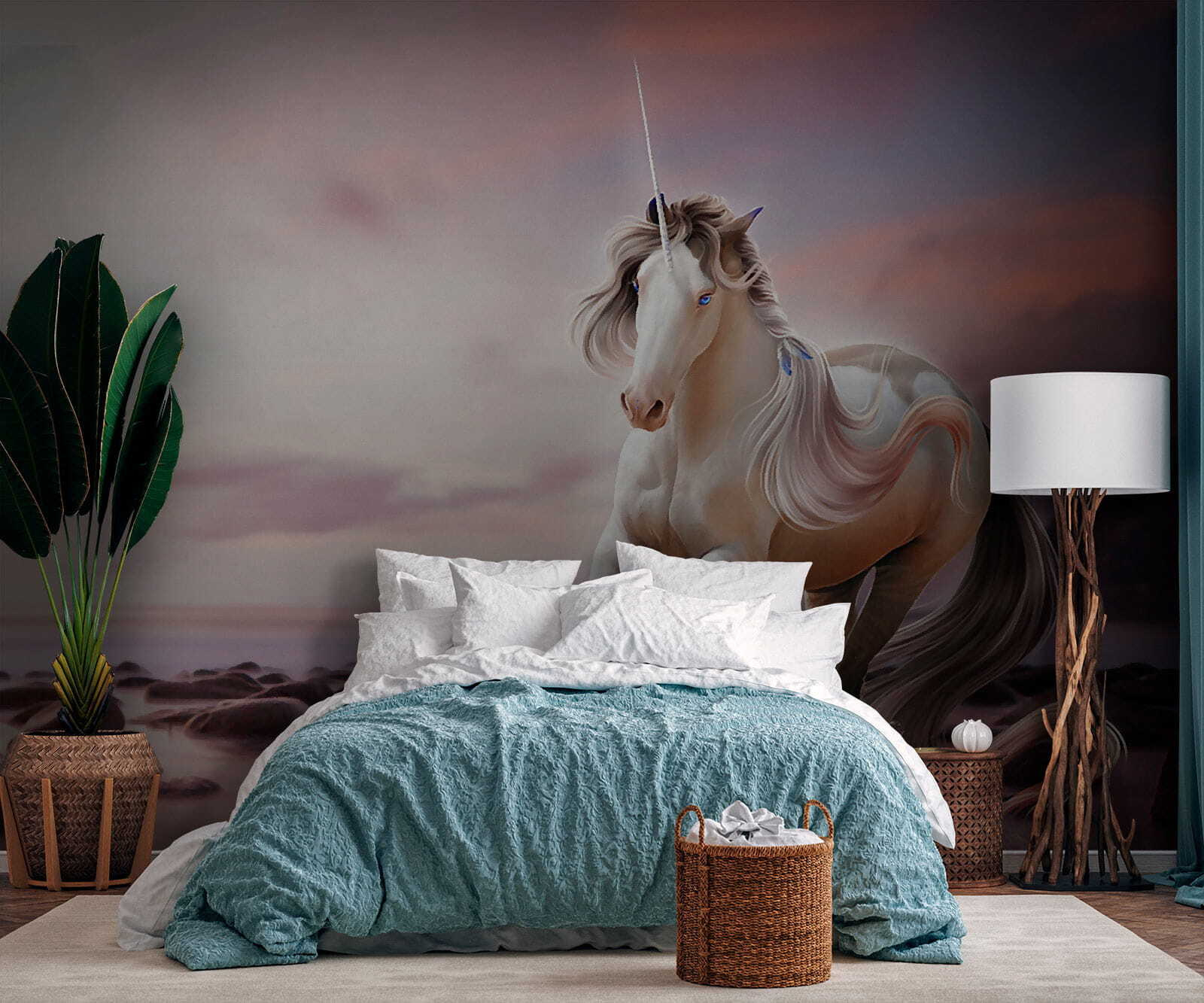 Immaginate di entrare in un mondo magico ogni volta che entrate nella vostra stanza. Questo murale “Mystical Unicorn in Serene Sunset” fa proprio questo. Perfetto per chi ha sempre sognato di avere un unicorno come migliore amico, è come avere un pezzo di terra fantastica proprio a casa. Le morbide tonalità crepuscolari e il mare sereno catturano la calma di una serata in riva al mare, ma con un pizzico di magia, perché chi non ha bisogno di un po’ di incanto nella propria vita? È particolarmente indicato per gli spazi dei bambini o come tocco stravagante in un angolo lettura. Immaginatevi: sdraiati sul vostro letto, guardando questo unicorno da sogno, vi sentirete trasportati in un luogo dove tutto è possibile – ecco cosa fa questo murale. Perché non aggiungere una spolverata di polvere di fata al vostro arredamento e rendere ogni giorno un po’ più magico?