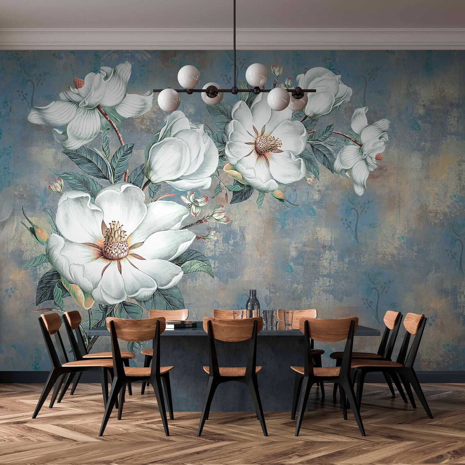 Trasformare una stanza in un paese delle meraviglie floreale è un gioco da ragazzi con questi fiori bianchi su un morbido sfondo blu. Immaginatevi di svegliarvi con una splendida fioritura che vi sbircia: è come avere un giardino in casa, senza l’annaffiatoio. I toni delicati di questo murale creano un’atmosfera rilassante, perfetta per mattinate accoglienti con una tazza di caffè o pomeriggi pigri con un buon libro. È un modo elegante per aggiungere personalità, senza esagerare. Ogni sguardo sembra una piccola fuga nella natura, che porta un fascino fresco alle pareti. Gli amici saranno curiosi di sapere da dove proviene questo favoloso arredamento e, a dirla tutta, voi vi sentirete dei maghi del design.