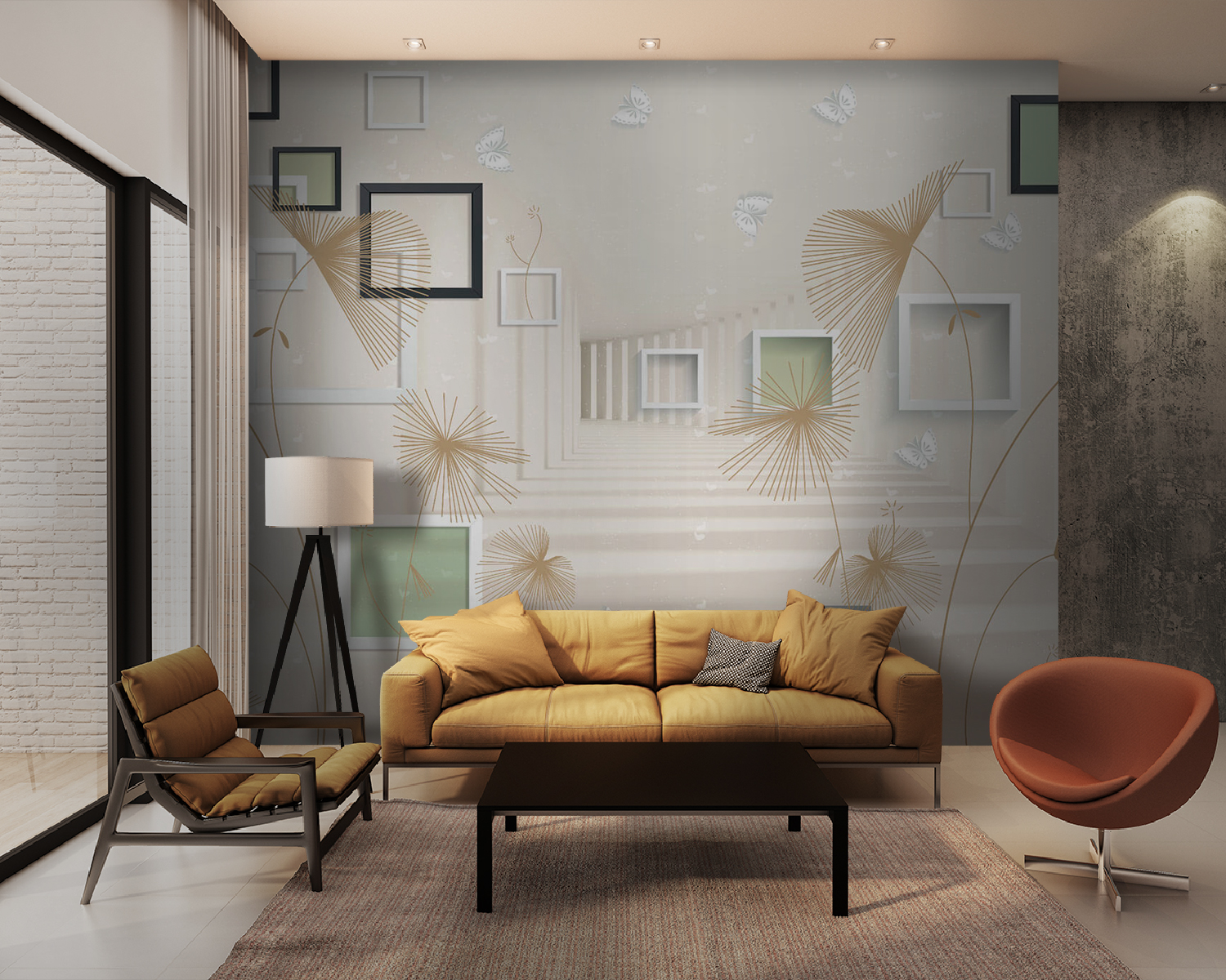 Guardate esattamente come apparirà il vostro spazio con la nuova carta da parati prima di acquistarla. Visualizzazione professionale da parte di designer esperti senza alcun costo o obbligo di acquisto.