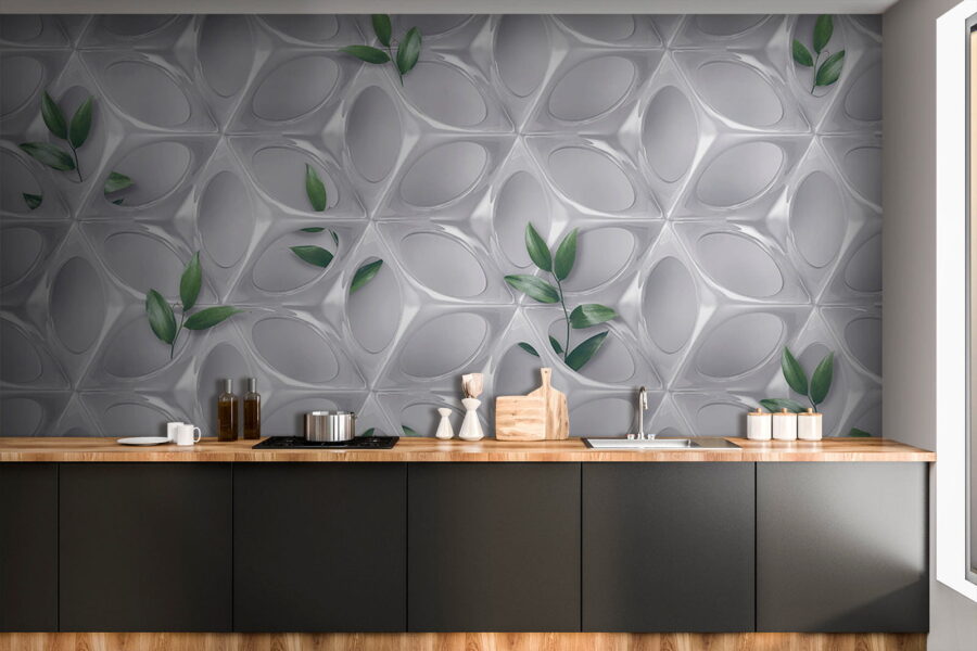 Il rivestimento vinilico è un sottile strato di PVC applicato a una base di tessuto non tessuto. La presenza del vinile rende la carta da parati resistente ai danni, consente una facile pulizia con una spugna umida e conferisce alla superficie una texture in rilievo, simile al tessuto di lino.