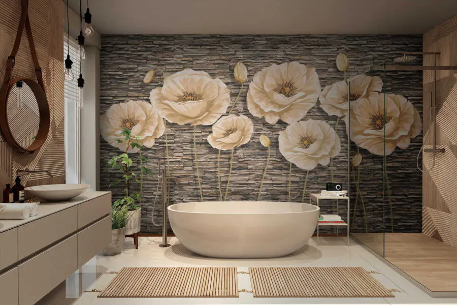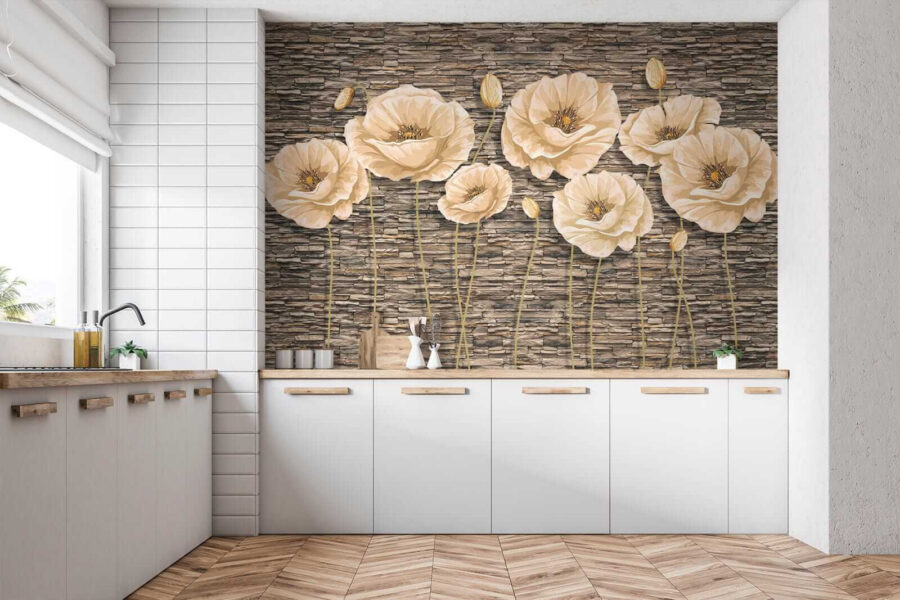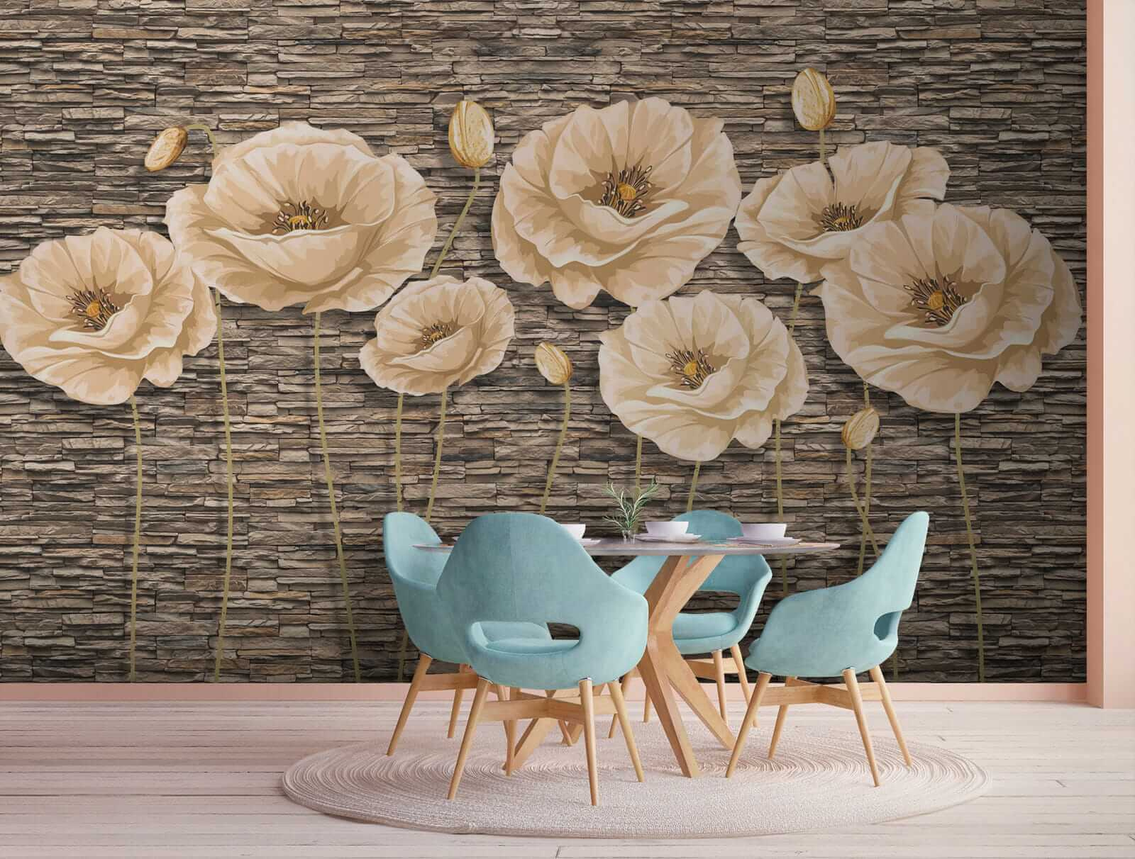 Ravvivate qualsiasi spazio con l’affascinante murale “Poppies on a Textured Wall”. Immaginate di entrare in una stanza dove soffici papaveri sembrano ondeggiare dolcemente in una calda brezza, portando l’esterno all’interno. I toni neutri di questi fiori giocano a meraviglia su uno sfondo che imita la pietra rustica. È come avere un piccolo giardino in salotto, perfetto per chi desidera un tocco di natura senza sporcare. Immaginate di ospitare gli amici: saranno attratti da queste splendide fioriture e magari vi chiederanno se vi siete trasformati in un giardiniere provetto da un giorno all’altro. Questo murale è vivo e ravviva qualsiasi stanza con una grazia senza sforzo. Trasformate le vostre pareti in una fuga serena: cosa c’è di meglio?