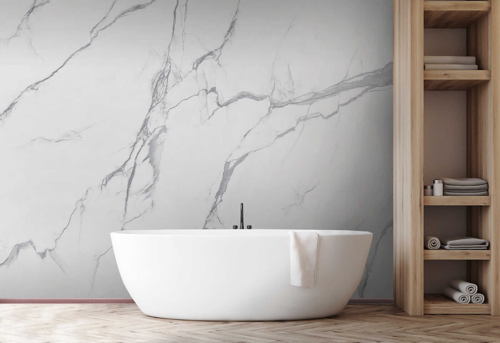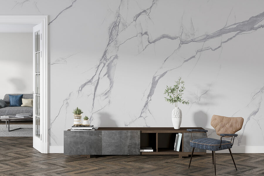 Trasformate qualsiasi spazio con questo splendido murale in marmo bianco, caratterizzato da delicate venature grigie che danzano sulla superficie. È come portare a casa vostra un’opera d’arte direttamente da una galleria d’arte, senza il costo elevato. Immaginate di entrare in una stanza dove le pareti sussurrano eleganza, rendendola immediatamente più spaziosa e ariosa.