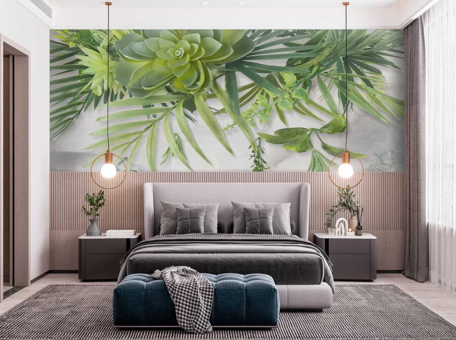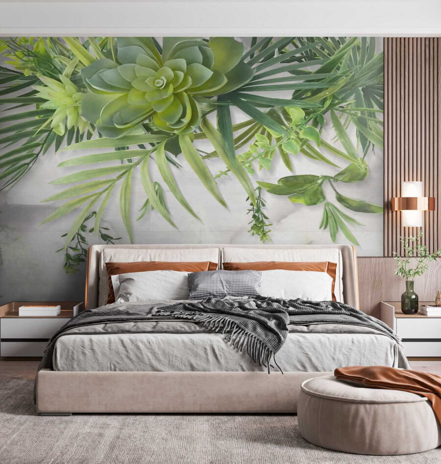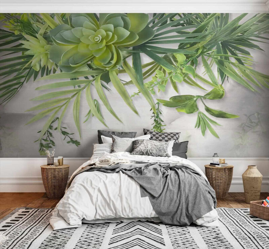 Immaginate di sorseggiare il vostro caffè mattutino sotto un baldacchino verde, senza uscire dal vostro salotto! Questo “Carta da parati Green succulents and leafy branches overhead” trasforma qualsiasi spazio in una fuga lussureggiante e tranquilla. Le vibranti piante grasse e i delicati rami frondosi che penzolano in alto sembrano quasi tridimensionali. È perfetto per respirare un po’ di natura, soprattutto se avete il pollice nero (non è necessario annaffiare!). Che stiate sognando una giungla urbana in città o che vogliate aggiungere un tocco rinfrescante alla vostra camera da letto a tema naturalistico, questo murale fa al caso vostro. È come avere un pezzo di giardino botanico all’interno, senza i fastidiosi insetti! Aggiungete un tocco di zen istantaneo a qualsiasi stanza… e forse un po’ di invidia da parte dei vostri amici.
