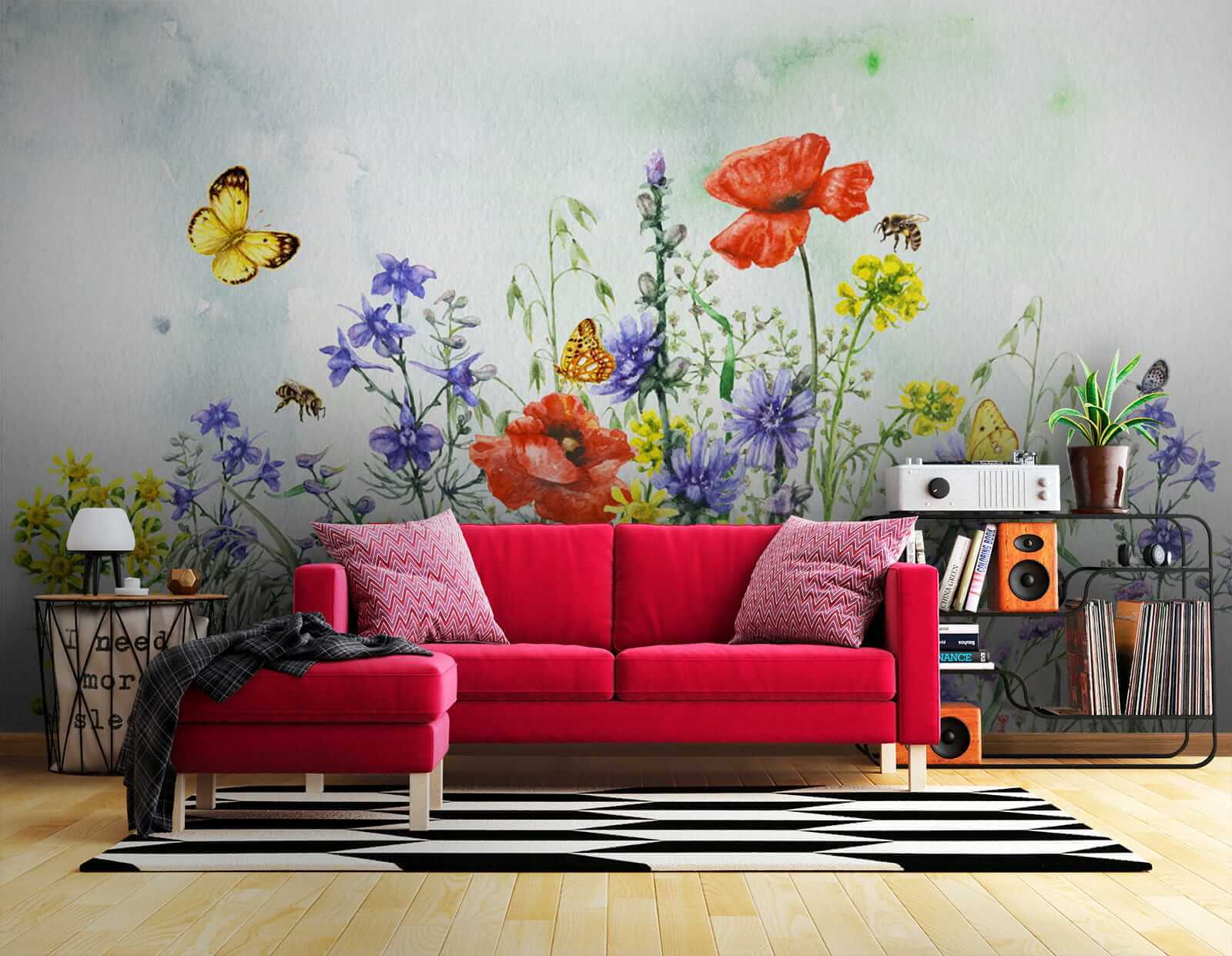 Questo murale non è solo una decorazione, ma trasforma l’atmosfera di uno spazio. Pensate alle pigre domeniche mattina con un caffè in mano, ammirando le fioriture colorate e le farfalle giocose: pura beatitudine. Con il suo fascino acquerellato, è perfetto per qualsiasi stanza che necessiti di un tocco di magia della natura. Potreste persino ritrovarvi a sognare di essere in un prato a ogni sguardo. Date alle vostre pareti una storia da raccontare. 🌸🦋