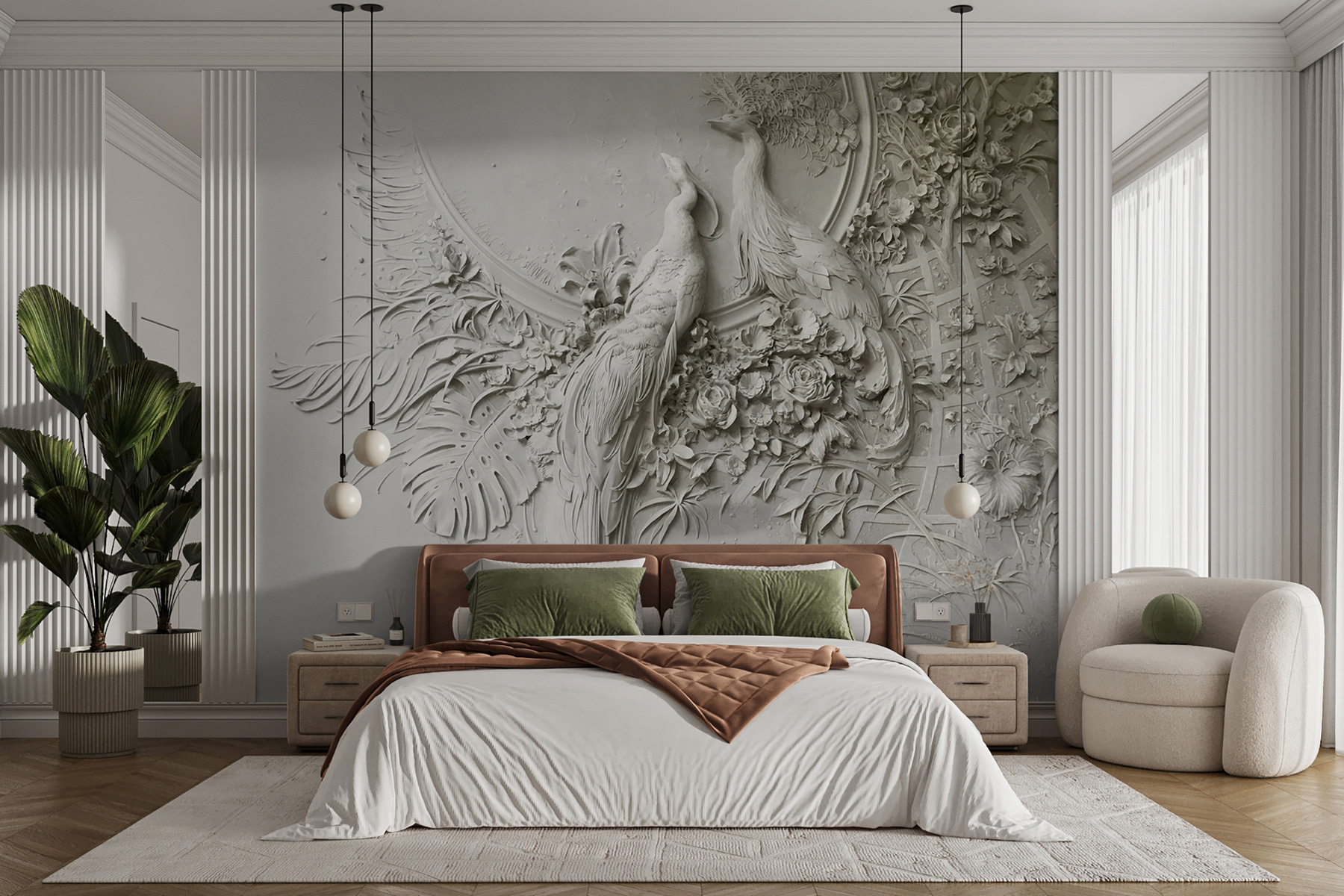 Immaginate di entrare in una stanza in cui sembra di entrare in un giardino sereno, dove pavoni e fiori danzano elegantemente insieme. Questo murale, con le sue graziose opere d’arte, trasforma qualsiasi spazio in un rifugio tranquillo. L’intricato disegno ha un’atmosfera rilassante, che quasi sussurra storie di natura. Immaginatevi di accoccolarvi con un buon libro, circondati da questa scena incantevole: una beatitudine completa, vero? Gli amici potrebbero perdersi nei dettagli, dando vita a piacevoli conversazioni sull’arte e sulla natura. Perfetto per chi apprezza la bellezza nella vita di tutti i giorni!