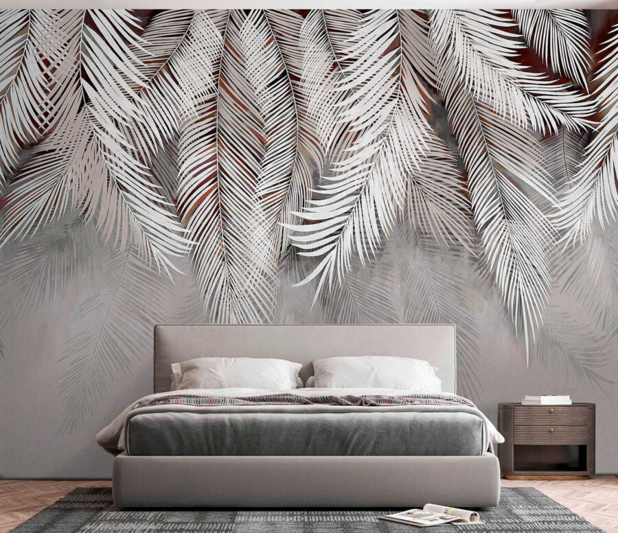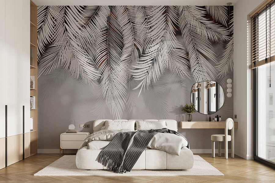 Trasformate qualsiasi stanza con questo affascinante murale con eleganti foglie di palma che danzano su uno sfondo morbido. Immaginatevi di rilassarvi in un angolo accogliente, con l’atmosfera serena che vi circonda come un caldo abbraccio. La semplicità del design lo rende adatto alla maggior parte degli arredi, siano essi boho chic o moderni e minimalisti. Immaginate la luce che filtra, proiettando ombre che fanno quasi ondeggiare le foglie. È come portare una fetta di paradiso in casa, perfetto per quei momenti in cui si ha bisogno di una piccola fuga. Chi non vorrebbe sentirsi ogni giorno come in una vacanza tropicale?