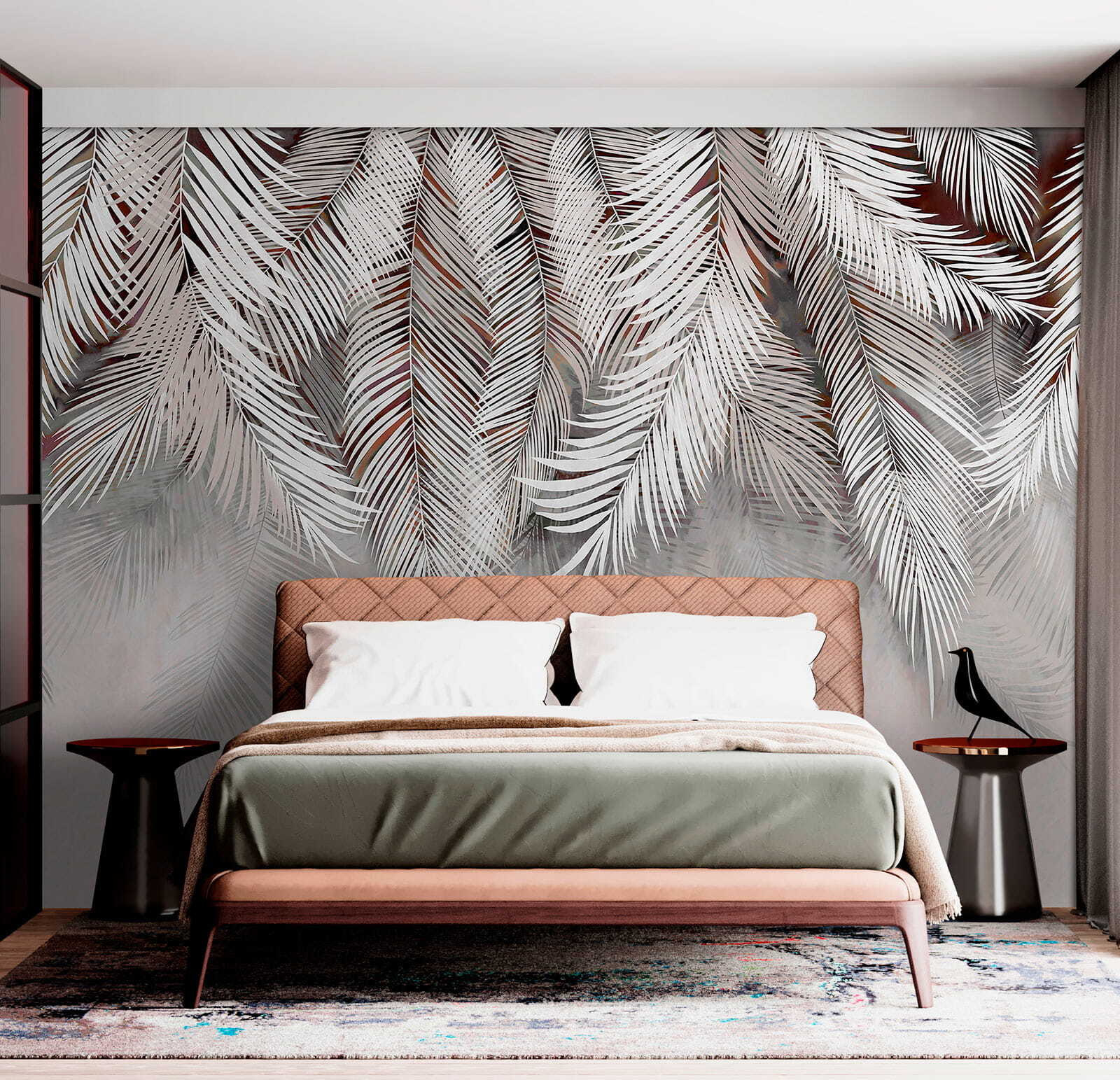 Trasformate qualsiasi stanza con questo affascinante murale con eleganti foglie di palma che danzano su uno sfondo morbido. Immaginatevi di rilassarvi in un angolo accogliente, con l’atmosfera serena che vi circonda come un caldo abbraccio. La semplicità del design lo rende adatto alla maggior parte degli arredi, siano essi boho chic o moderni e minimalisti. Immaginate la luce che filtra, proiettando ombre che fanno quasi ondeggiare le foglie. È come portare una fetta di paradiso in casa, perfetto per quei momenti in cui si ha bisogno di una piccola fuga. Chi non vorrebbe sentirsi ogni giorno come in una vacanza tropicale?