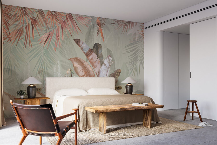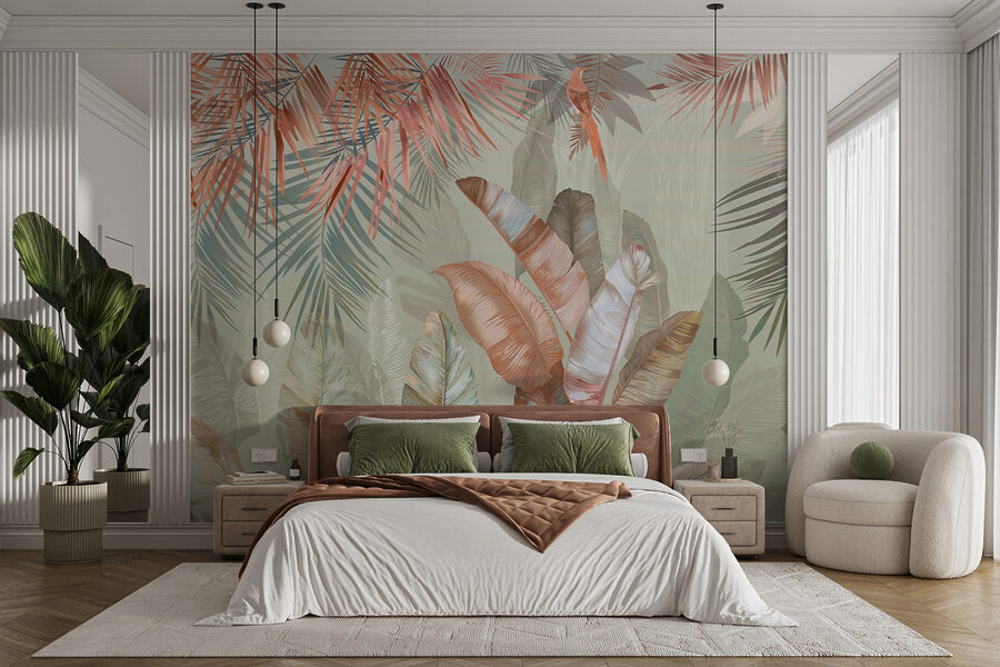 Trasformate il vostro spazio con questo delizioso murale con foglie tropicali in morbide tonalità pastello. Immaginatevi di svegliarvi in una stanza illuminata dal sole dove la natura sussurra attraverso l’arte. Questi verdi delicati e i toni del blush invitano a un’atmosfera tranquilla, perfetta per un angolo accogliente o anche per un soggiorno luminoso. Immaginate di sorseggiare un caffè in una giornata di pioggia e di sentirvi come in una giungla serena. È come una mini-vacanza proprio sulla vostra parete. Inoltre, è un ottimo spunto di conversazione: gli ospiti saranno curiosi di conoscere l’ispirazione di questa bellezza rilassante.