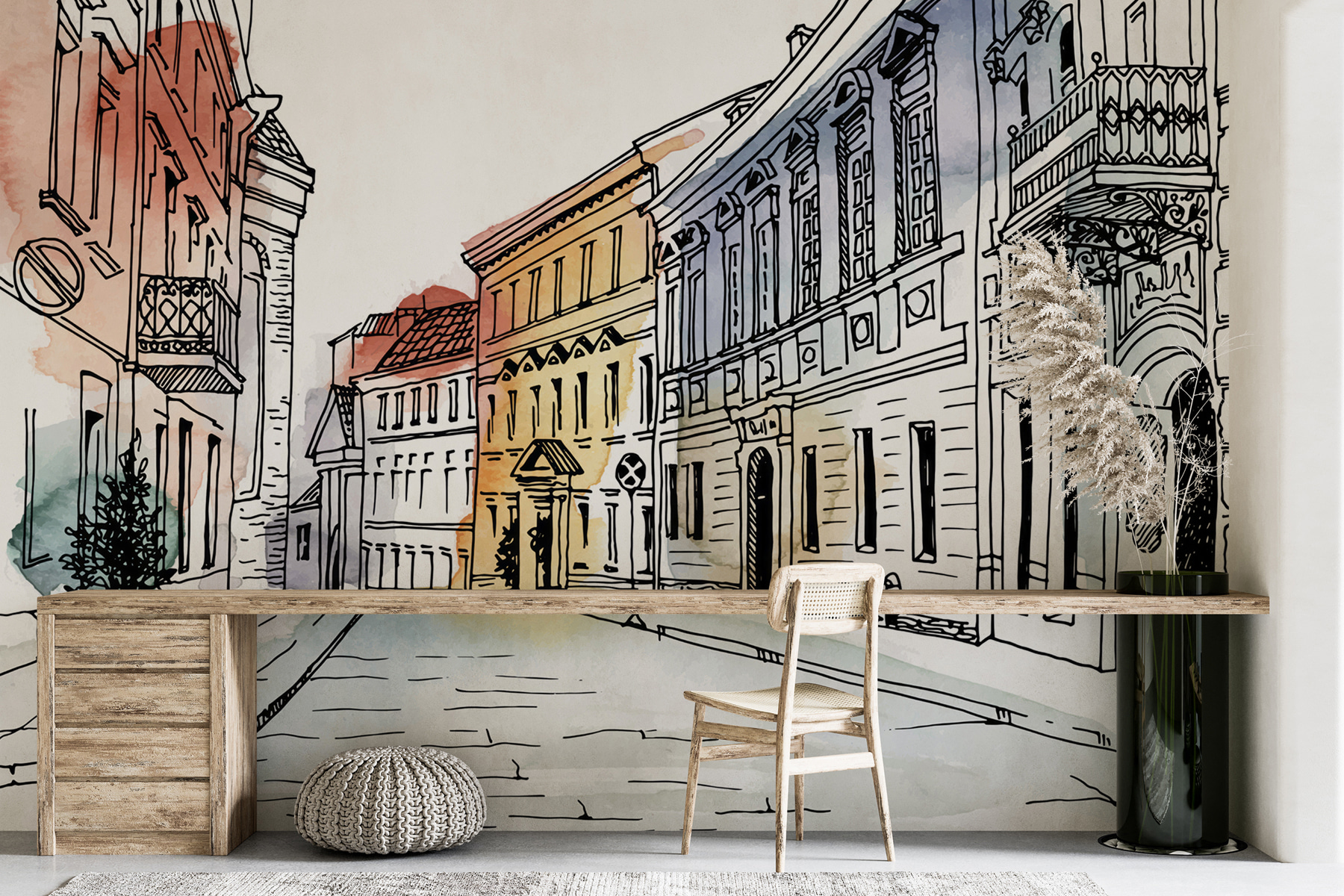 Immaginate di entrare nel vostro salotto e di essere immediatamente trasportati in un’affascinante strada europea. Questo “Murales Disegno di un edificio” porta un tocco di architettura ed eleganza d’altri tempi direttamente sulle vostre pareti. Realizzato per gli amanti del bel design e degli spazi unici, questo murale invita a vagare per quelle strade di ciottoli ogni volta che lo si intravede. Avete bisogno di un argomento di conversazione? Eccolo qui. I vostri ospiti potrebbero perdersi tra le linee intricate e i morbidi schizzi di acquerello. Perfetto per dare a qualsiasi ambiente un’atmosfera accogliente e sofisticata. È come avere una mini-vacanza a casa, senza il jet lag. Molto meglio di una semplice pittura, non credete?