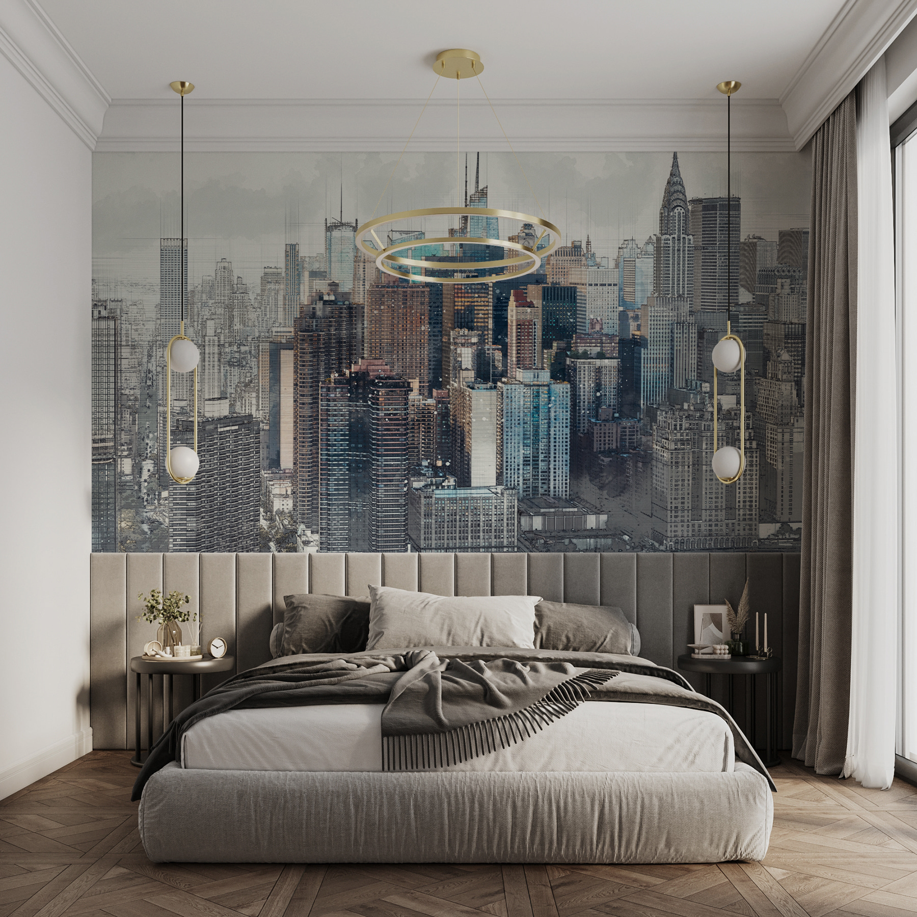 Immaginate il caldo sole pomeridiano che proietta le ombre sui grattacieli o i sereni blu e grigi che rendono la stanza un po’ più profonda e ricca. Gli amici potrebbero addirittura chiedersi: “È una foto?”. No, è il vostro murale super cool. È più di una semplice scelta di arredamento: è una fuga, un ricordo quotidiano della città che non dorme mai, il tutto nel comfort di casa vostra.