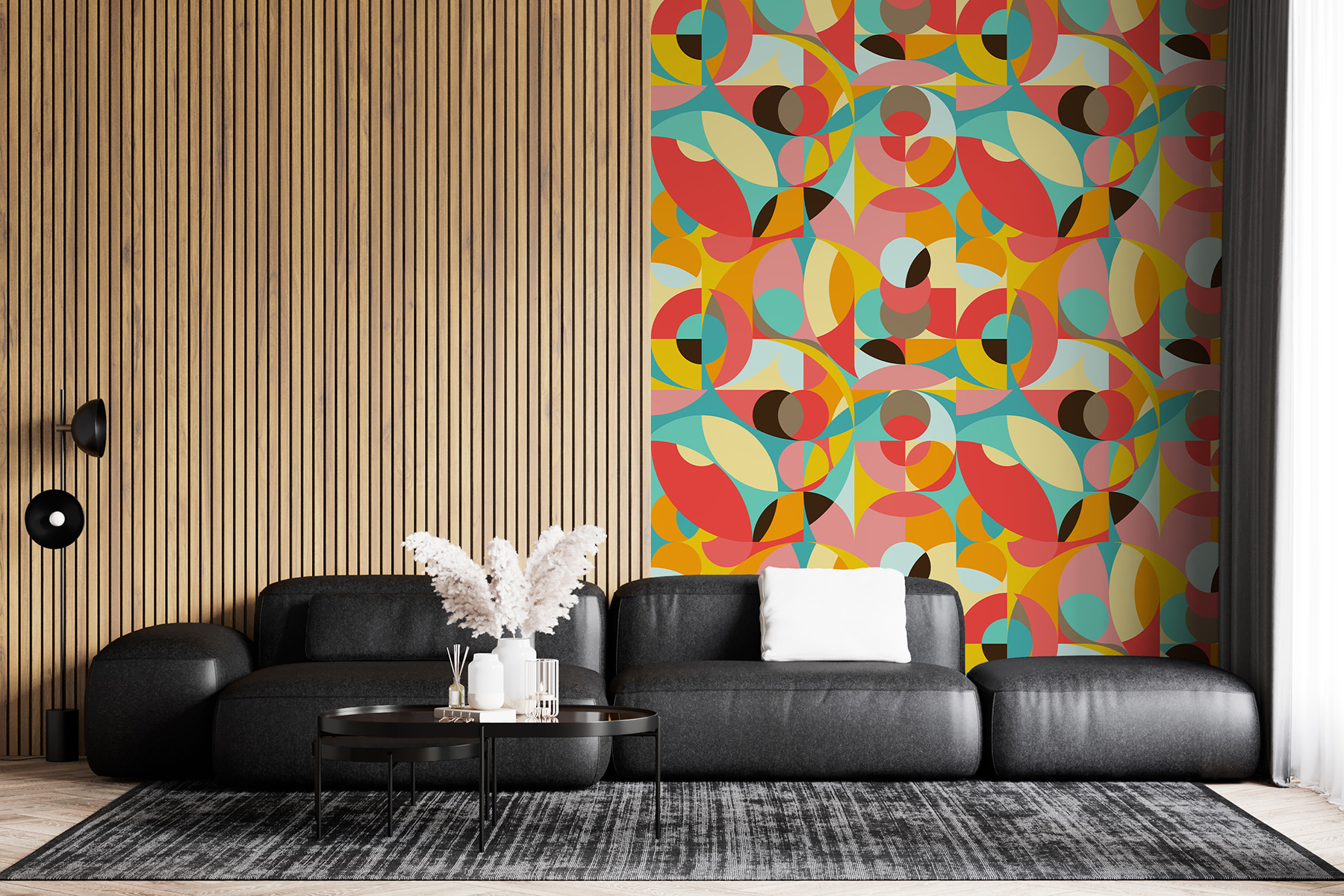 Ravvivate qualsiasi ambiente con questo stravagante murale con motivi colorati di cerchi e punti che danzano sulla superficie. Immaginate di entrare in uno spazio immediatamente vibrante come una galleria d’arte giocosa, senza le vibrazioni snob. I colori vivaci e le forme uniche catturano l’attenzione e accendono la conversazione. È perfetto per un salotto accogliente, uno spazio di lavoro creativo o anche un angolo per bambini dove l’immaginazione si scatena. Immaginatevi un pomeriggio di pioggia trascorso in casa, con la calda luce di questo murale che trasforma il grigiore in un rifugio accogliente e allegro. Chi ha bisogno di una fuga quando la casa può essere così divertente?