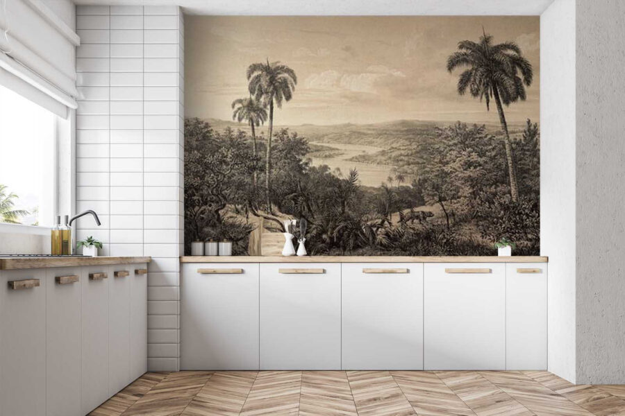 Immagina di entrare in un paradiso sereno ogni volta che entri in una stanza: questo murale lo rende possibile! “Paesaggio con alberi e fiume” cattura l’essenza della natura con le sue palme vivaci e il fiume sinuoso, offrendo una fuga tranquilla dal trambusto quotidiano. Perfetto per un angolo lettura accogliente o come elemento distintivo in un soggiorno, invita a sognare ad occhi aperti fughe lussureggianti. Immaginate di sorseggiare il vostro caffè mattutino mentre ammirate la vegetazione lussureggiante: è come portare un po’ di natura all’interno. Inoltre, i toni delicati creano un’atmosfera tranquilla, rendendolo uno sfondo delizioso per tutti i vostri momenti preferiti. Cosa c’è di più confortante?