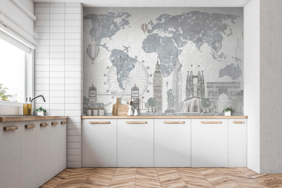 Questo murale è un vero e proprio gioco per tutti coloro che hanno un po’ di voglia di viaggiare. Immaginate di svegliarvi ogni giorno con un mondo di monumenti famosi direttamente sulla vostra parete! Dalla Torre Eiffel al Big Ben, è come fare un mini viaggio intorno al mondo dalla vostra accogliente camera da letto o dal vostro vivace salotto. Inoltre, è ideale per i bambini che sognano di esplorare nuovi luoghi o per gli adolescenti che desiderano un tocco di stile e mondanità. I toni tenui sono rilassanti, non troppo forti, ma comunque ricchi di personalità. È un po’ ipnotico, no? Vi sorprenderete a tracciare la mappa, a pianificare future avventure o semplicemente a godervi il fascino unico che aggiunge al vostro spazio. Che sia per la stanza del vostro giovane avventuriero o per il vostro arredamento alla moda, sarà sicuramente un argomento di conversazione.