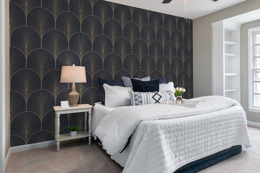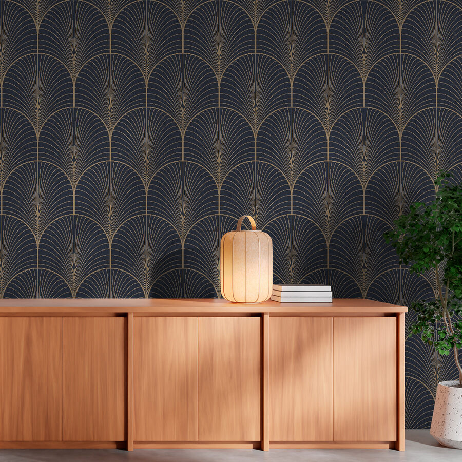 Trasformate il vostro spazio con l’eleganza di questo motivo a ventaglio art déco. Immaginate di entrare in una stanza dove le pareti sono ornate da linee e curve eleganti, che danno subito un’atmosfera sofisticata. È come avere un pezzo d’arte senza tempo che porta un tocco di modernità. Mentre sorseggiate il vostro caffè, potete quasi sentire il jazz che suona dolcemente, sentendovi ispirati e sollevati. Che si tratti di un accogliente angolo lettura o di un salotto alla moda, questo murale aggiunge carattere senza essere invadente. È un perfetto spunto di conversazione: aspettate che gli amici vengano a trovarvi e non possano fare a meno di ammirare lo stile che avete creato!