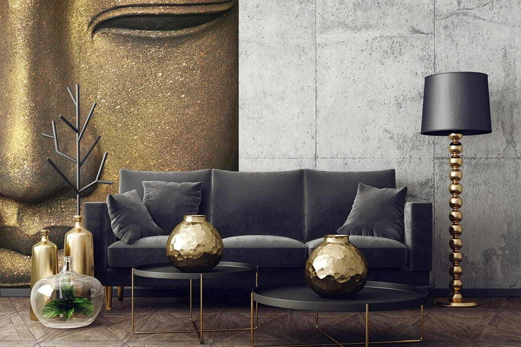 Guardate esattamente come apparirà il vostro spazio con la nuova carta da parati prima di acquistarla. Visualizzazione professionale da parte di designer esperti senza alcun costo o obbligo di acquisto.