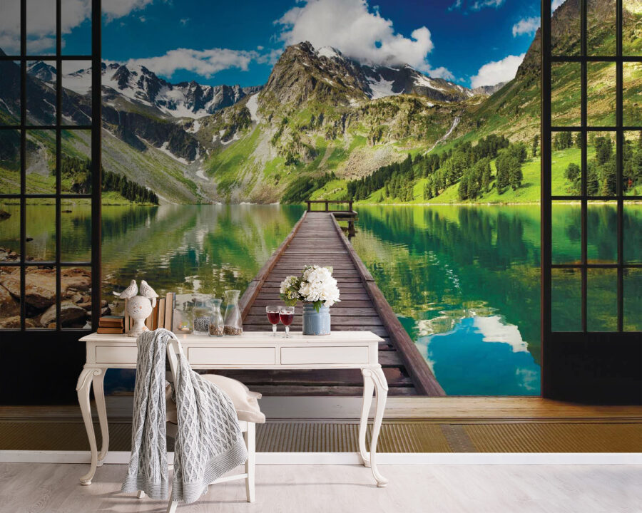 Volete un po’ di natura nel vostro salotto? Date un’occhiata a questo splendido murale: “Molo di legno su un lago con montagne sullo sfondo”. È come avere una finestra segreta su un sereno rifugio di montagna. Immaginatevi di uscire su un pontile di legno, con la fresca brezza che vi scompiglia i capelli e le maestose montagne che si stagliano all’orizzonte. Perfetto per chi desidera una boccata d’aria fresca senza uscire di casa.