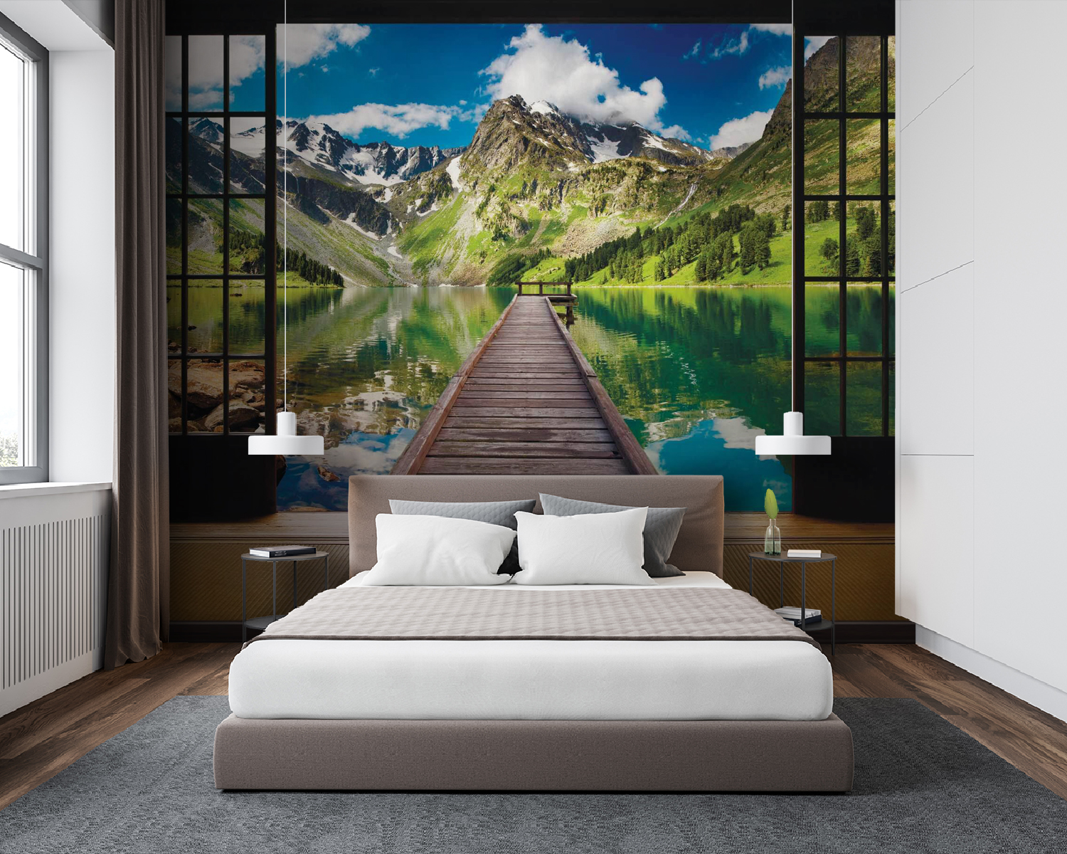 Volete un po’ di natura nel vostro salotto? Date un’occhiata a questo splendido murale: “Molo di legno su un lago con montagne sullo sfondo”. È come avere una finestra segreta su un sereno rifugio di montagna. Immaginatevi di uscire su un pontile di legno, con la fresca brezza che vi scompiglia i capelli e le maestose montagne che si stagliano all’orizzonte. Perfetto per chi desidera una boccata d’aria fresca senza uscire di casa.