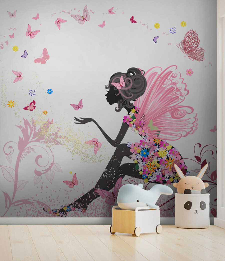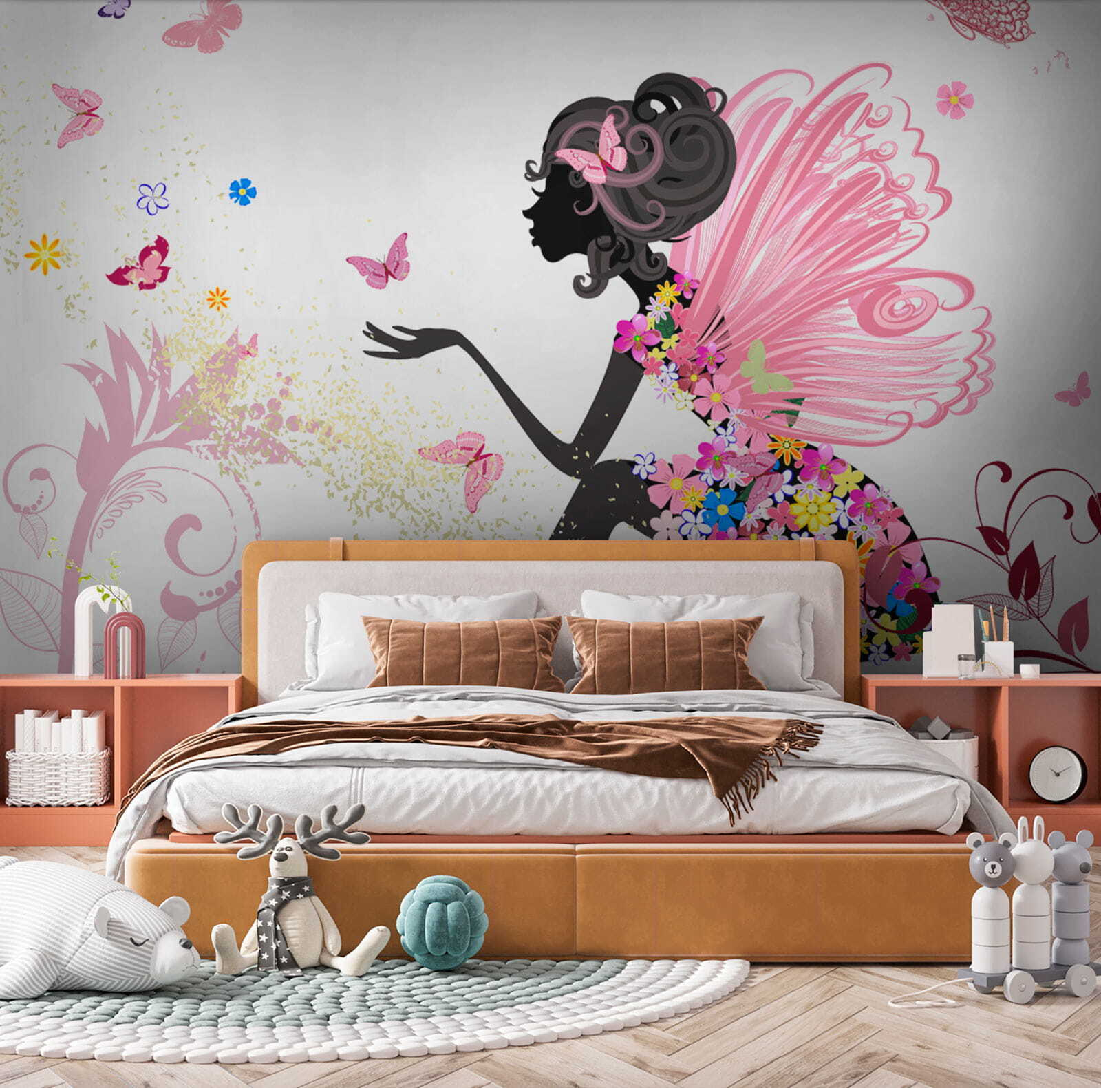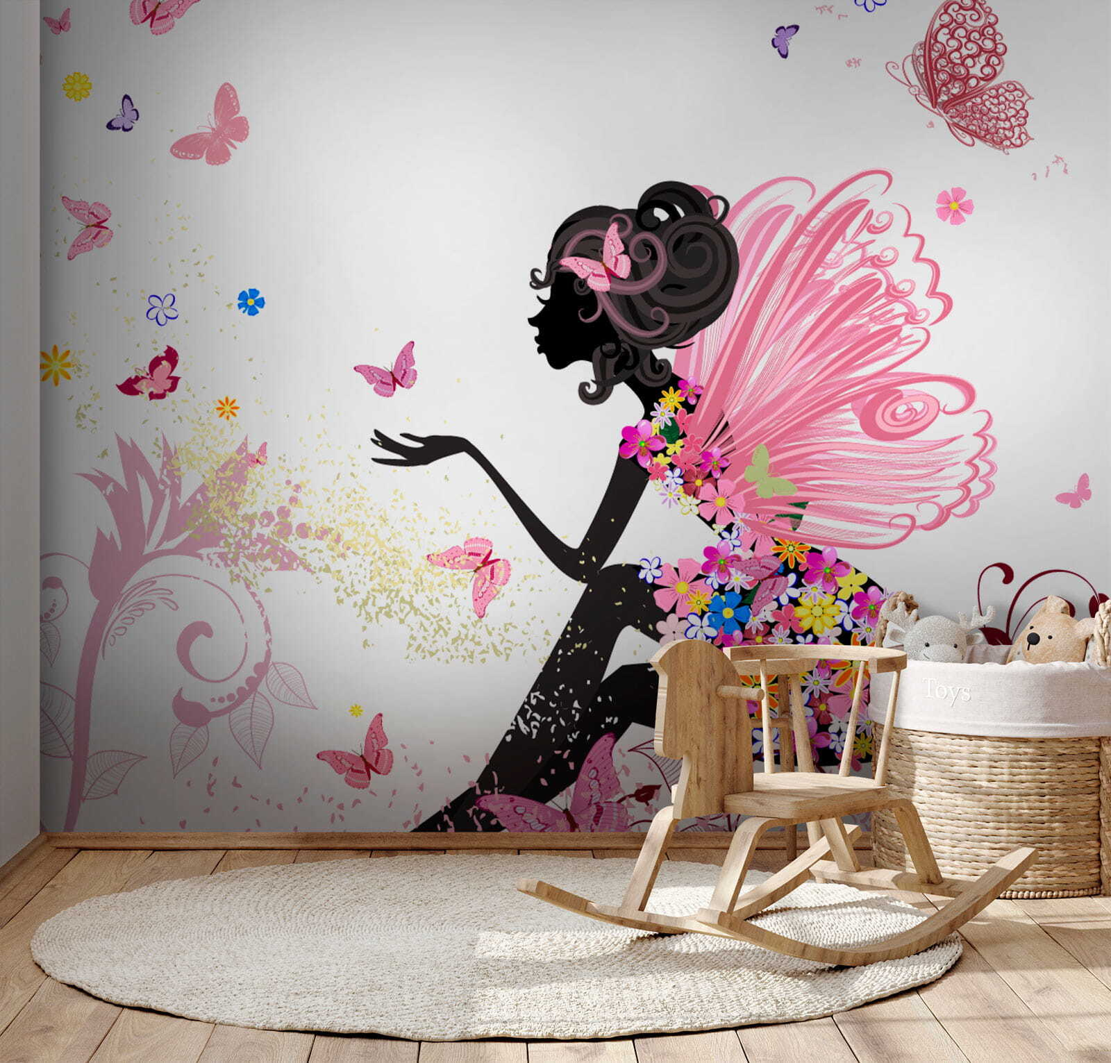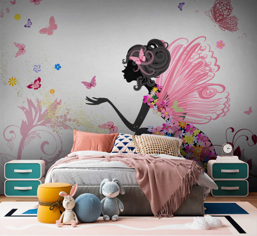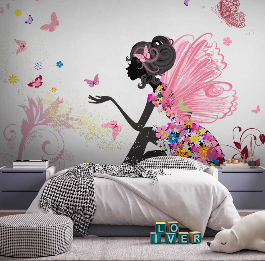 Questo incantevole murale, “Profilo di donna con farfalla tra i capelli”, è il tocco perfetto per la stanza del vostro piccolo. Immaginate la splendida silhouette di una donna circondata con grazia da farfalle svolazzanti, come se si trovasse in un giardino segreto. Il rosa tenue e i fiori stravaganti aggiungono un tocco di magia: è come avere una fiaba direttamente sulla parete!