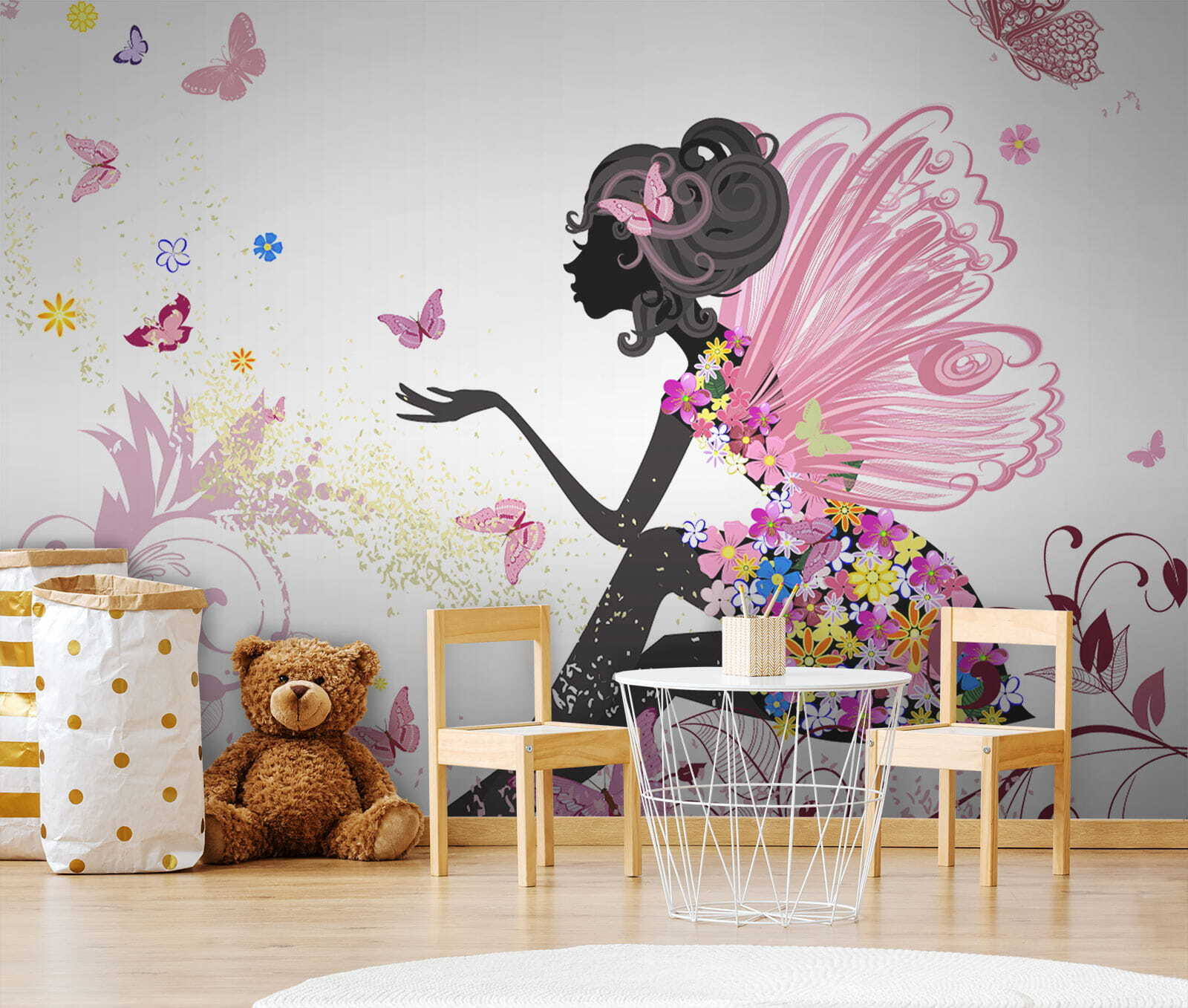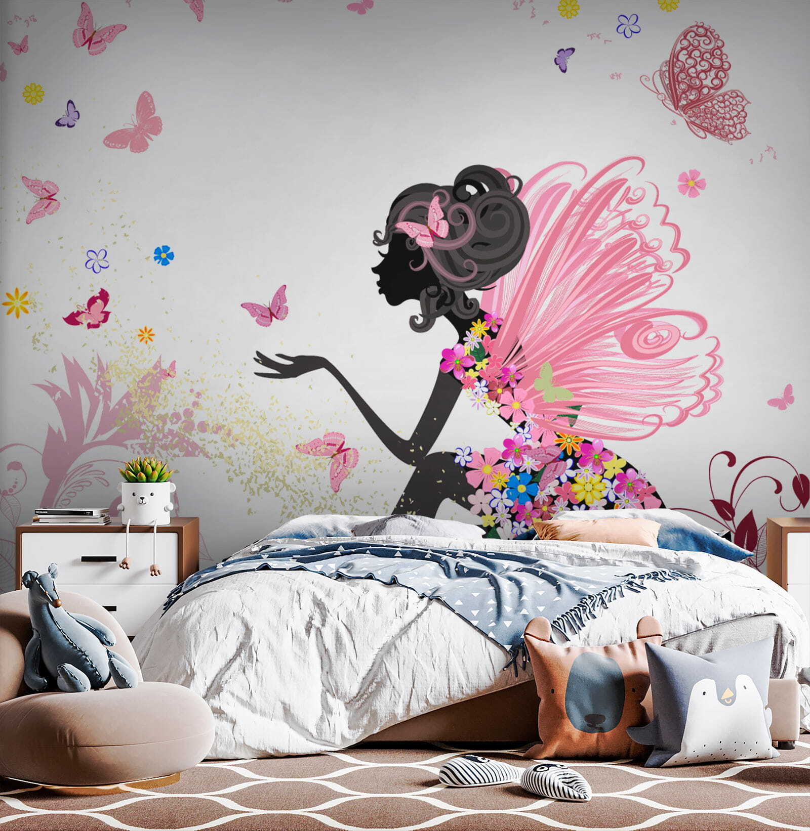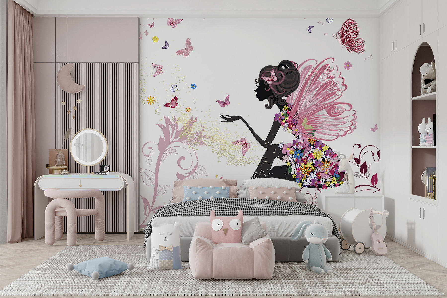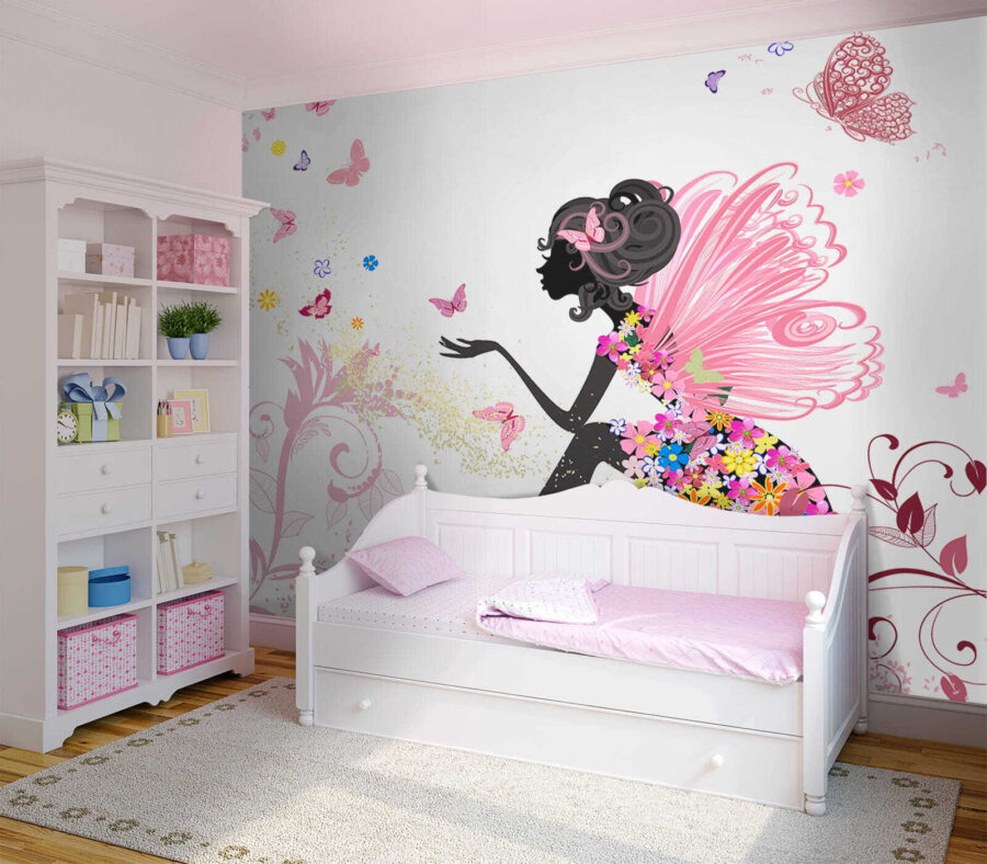 Questo incantevole murale, “Profilo di donna con farfalla tra i capelli”, è il tocco perfetto per la stanza del vostro piccolo. Immaginate la splendida silhouette di una donna circondata con grazia da farfalle svolazzanti, come se si trovasse in un giardino segreto. Il rosa tenue e i fiori stravaganti aggiungono un tocco di magia: è come avere una fiaba direttamente sulla parete!