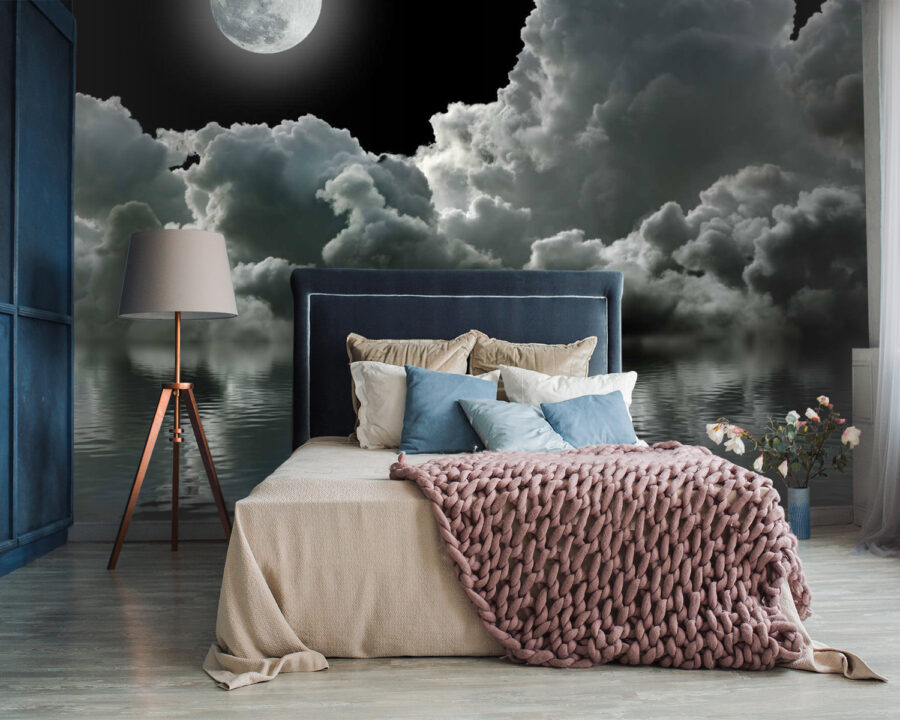 Carta da parati Luna sull’acqua con nubi e nuvole (SKU: u54519)