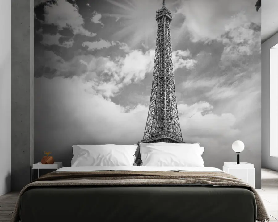 Bring a piece of Paris into your home with the “Tall Tower with a Cloudy Sky” mural. Imagine waking up to the graceful silhouette of the Eiffel Tower, set against a dreamy sky that shifts with the light of day. It’s like having a little slice of the City of Light right in your living space. Picture cozy evenings, perhaps sipping café au lait and chatting with friends, while the mural whispers tales of romance and adventure. The classic black-and-white tones add a touch of elegance without being too flashy—perfect for framing your everyday moments. Transform your walls and let your imagination soar!