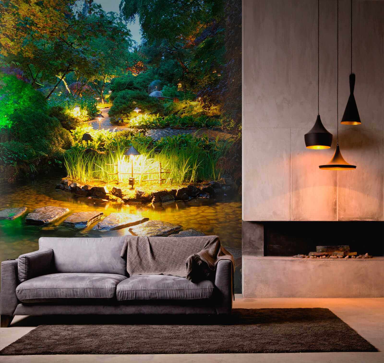 Transform any space with the enchanting “Wall Murals Stone Path in a Pond with Lights.” Imagine stepping into a tranquil escape right from your living room! This mural wraps you in soothing hues and softly glimmering lights, making it feel like you’re wandering a hidden garden at dusk.